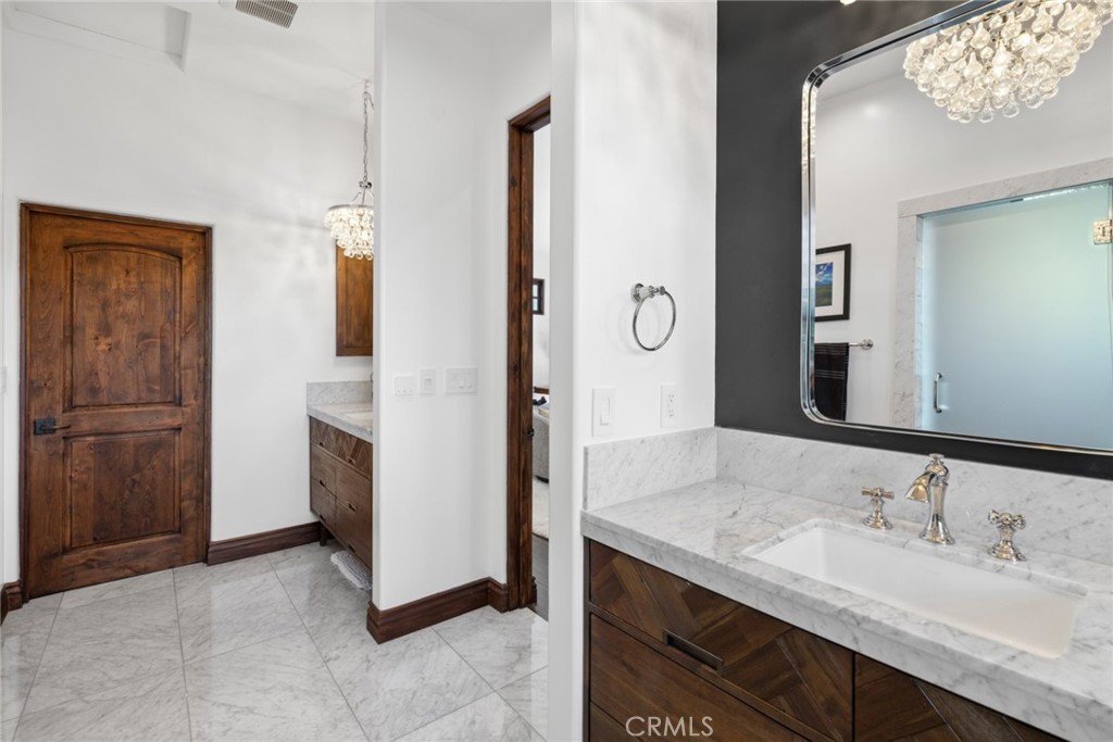 A private entry courtyard introduces the home with a sense of intimacy as the layout unfolds offering six bedrooms and six-and-two-half baths. On the main level, two bedroom en suites and a detached casita offer quiet refuge- and an additional flex space is perfect for a dedicated gym. Upstairs offers an ideal configuration with a primary bedroom suite with office space and two additional secondary bedroom en suites.