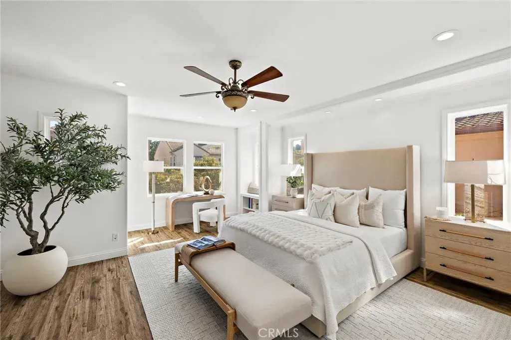 Nestled within the guard-gated community of Northpark, 18 Bel Spring is a refreshed and light-filled residence that blends comfort, functionality, and style in one of Irvine’s most sought-after enclaves. Soaring ceilings greet you upon entry, creating a bright and airy formal living space that sets the tone for the home’s open and inviting layout. The remodeled kitchen features modern finishes, updated appliances, and a seamless connection to the expanded family room, dining area, and breakfast nook—ideal for everyday living and entertaining. Natural light floods the interiors, while the deep backyard offers the perfect extension of indoor-outdoor living, featuring multiple seating areas to host and entertain. Upstairs, the spacious primary suite includes a dry bar with dual mini-fridges and a beautifully updated bathroom with an expanded walk-in shower. Two additional bedrooms share a full bath, completing this well-designed floor plan. Located just steps from Hicks Canyon Elementary and multiple community parks, residents enjoy resort-style amenities including pools, tennis courts, and scenic walking trails—all within close proximity to shopping, dining, and freeway access.