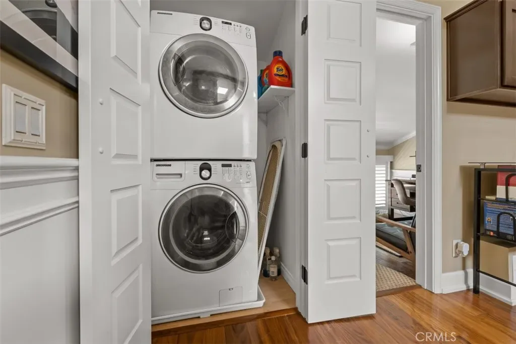Additional features include: updated HVAC, partial dual-pane windows, Samsung stackable laundry units (included), smart thermostat, and fresh designer two-tone paint throughout.