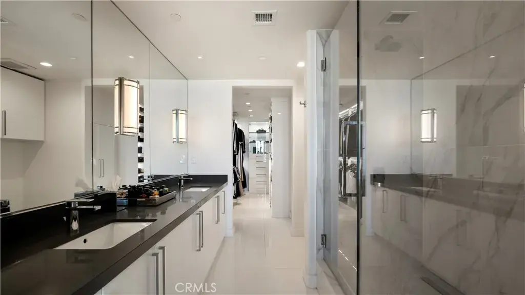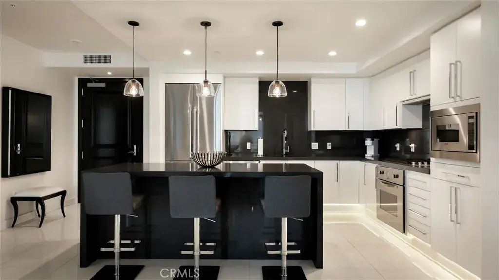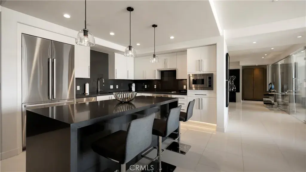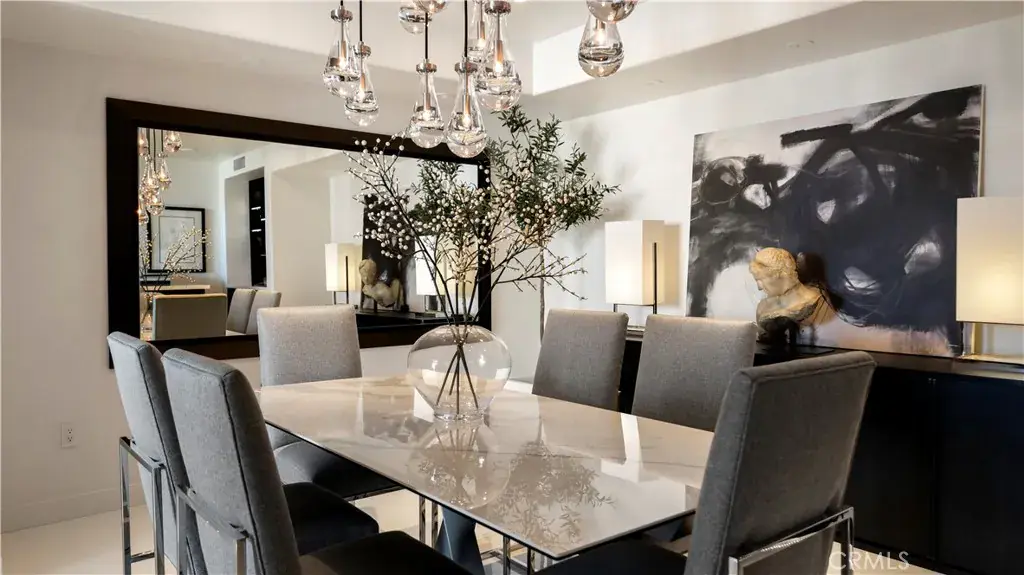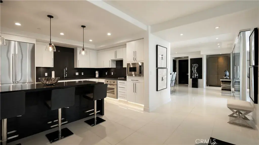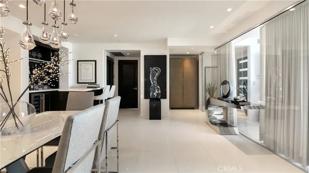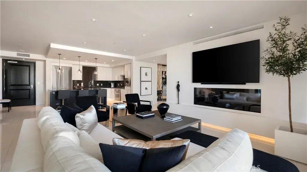 Welcome to 8085 Scholarship, a truly rare offering at The Plaza in Irvine. This extensively reimagined contemporary residence is the result of a tasteful combination of two units into one expansive, single level showpiece, creating a scale and layout seldom available in luxury high rise living. Fully gut renovated with a refined, contemporary design aesthetic, the home was rebuilt with meticulous detail. Brand new appliances, cabinetry, sinks, toilets, upgraded plumbing fixtures, and curated finishes throughout deliver a cohesive, designer environment that is completely turnkey. Clean architectural lines, beautiful white stone flooring, and walls of glass enhance the open concept layout, filling the residence with natural light while offering seamless flow for both elevated entertaining and comfortable daily living. The thoughtfully designed floor plan features two spacious primary suites, each serving as a private retreat with generous walk in closets and spa inspired baths appointed with premium materials and contemporary detailing. In addition, a dedicated office or primary retreat provides flexibility for remote work, a lounge, or fitness space. Two powder rooms add convenience for guests. A formal dining room introduces a sense of occasion, while a sophisticated bar area creates the perfect setting for hosting. The chef’s kitchen anchors the main living space with top tier appliances, sleek stone countertops, and a greatly sized island that serves as both focal point and gathering hub. Practical luxuries further distinguish this offering, including four side by side parking spaces, an exceptional rarity within The Plaza, along with two private storage units for added convenience. Residents enjoy resort caliber amenities including 24/7 concierge and security, a state of the art fitness center, resident lounge, conference facilities, billiards room, outdoor terraces, and a pool, spa, and steam room, all moments from premier dining, shopping, world class beaches, and John Wayne Airport. 8085 Scholarship presents a one of a kind opportunity to own one of the most distinctive and fully transformed residences within The Plaza.