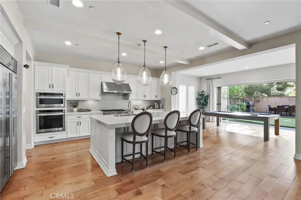 Behind the prestigious gates of The Groves at Orchard Hills, this distinctive residence showcases breathtaking designer finishes that set it apart from every home in its class. Flooded with natural light, the spectacular open layout features soaring ceilings, wrought-iron accents, rich wood flooring, and dramatic beams, creating an inviting space for both luxurious family living and grand entertaining. The chef-inspired kitchen is a true showpiece with sleek white cabinetry, custom countertops, high-caliber stainless appliances, and a large center island overlooking the great room, dining area, and conservatory. Accordion bi-fold doors blur the line between indoors and outdoors, opening to a spacious backyard designed for gatherings and relaxation. The primary suite offers a serene retreat with a spa-like bath and dual walk-in closets, while the generous secondary bedrooms each include en suite baths. A versatile bonus room, upstairs laundry, and an extended main-floor bedroom with private bath ensure functionality and flexibility for modern living. Premium upgrades include Custom window treatments & premier shade system, alarm system & surround sound, Tankless water heater & paid off solar panels, Built-in EV charger in the 3-car tandem garage. The backyard oasis is equally impressive, featuring California room, an open artificial grass play area with mini golf green, a wood-paved entertainment space, and a natural stone wall fountain for tranquil ambiance. This turn-key home is complemented by Orchard Hills’ world-class amenities: multiple pools, a clubhouse, parks, hiking trails, basketball and tennis courts, and proximity to award-winning schools and the vibrant Orchard Hills Shopping Center. Don’t miss this rare opportunity to enjoy resort-style living in one of Irvine’s most prestigious neighborhoods!