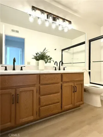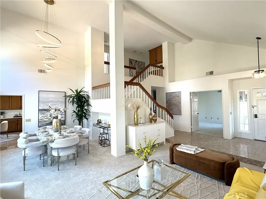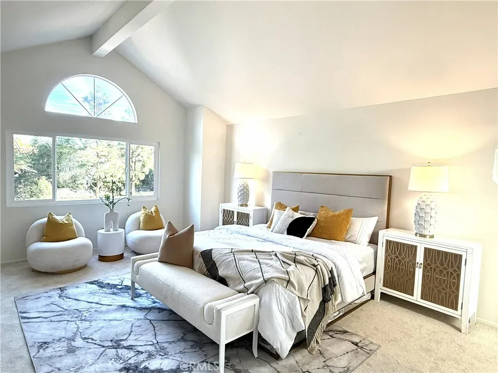Gorgeous, private, bright and airy, and a completely new remodel. This house is ideally situated in a corner lot, with only one neighbor adjacent. The entry way features cathedral ceilings in the living and dining room, and additional vaulted ceilings in the primary and a secondary bedroom provide extra space and light. Complete with new finishes, from gorgeous quartz counter tops to paint, carpet, and plank vinyl flooring, this home has a new custom master bathroom with a walk in shower and soaking tub, featuring custom tile work and glass shower enclosure. Beautiful walnut cabinetry provide ample storage space. All the completely new, never used, appliances are energy efficient: Kitchen-Aid gas cook top, LG convection oven/air fryer/microwave combo, LG refrigerator and LG dishwasher. Double paned windows and sliding glass doors are also completely new. You and your loved ones can stroll easily to Starbucks for your morning coffee, pastries at Paris Baguette, or a quick grocery and errands run at Hmart, Sprouts, or Target. You will also be close enough to the community pool and spa to enjoy a dip in the pool and a soak in the spa without having to drive. To top it off, this home is within the highly sought Irvine Unified School district. No mello roos and only $54 HOA dues. A rare find with all these combined attributes!