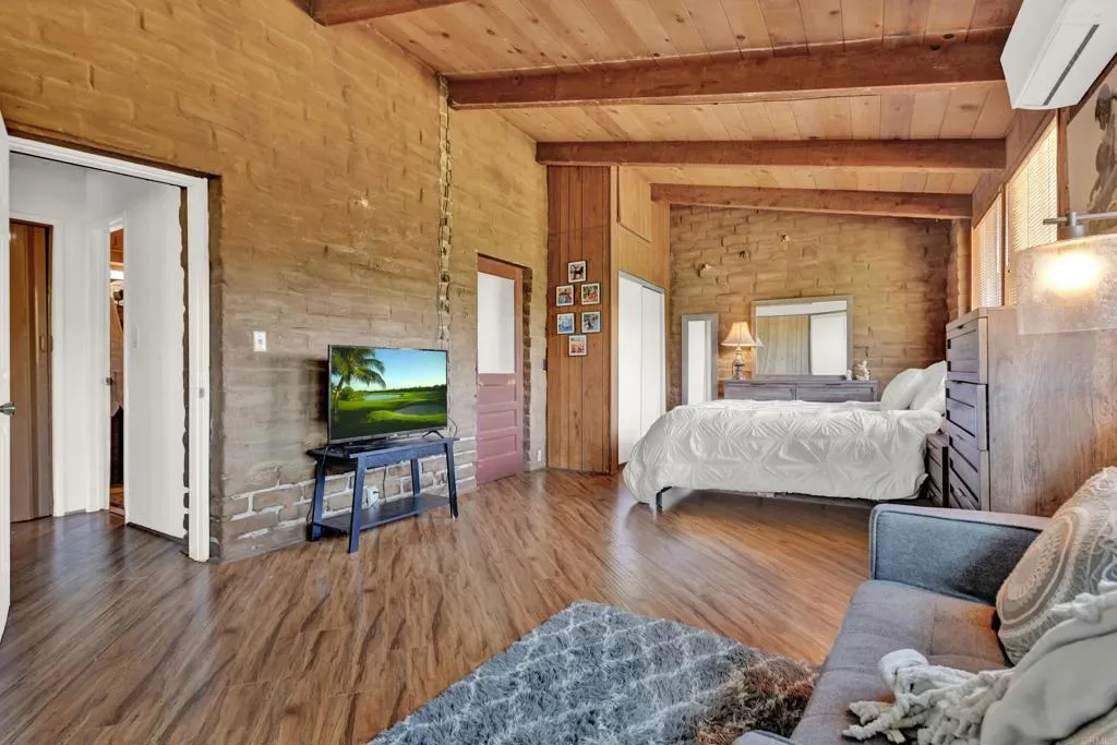 Rare chance to purchase this unique home. Zoned for 2 homes. Located in town but in a very private area with great views. The Jamul Creek travels through the property complete with native trees and views creating a rare oasis. This unique half round adobe, 2 bedrooms, 1 bath (1 bedroom used as office). The kitchen was updated with granite counters, oak cabinets, and lots of windows to enjoy the views. There is an attached laundry room/storage area that with some work could probably be a fully enclosed room. There is a pad on the upper level above the existing house that could easily be a 2nd dwelling area (used to have a trailer there). The old septic and power are still up there. Great location, close to town and schools, but private.