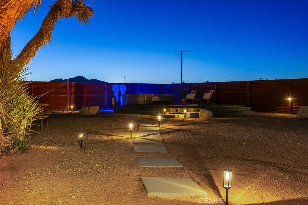 One of the parcels is fully fenced and accessed through a solar-powered electric gate. Mature desert landscaping, including established Joshua Trees, enhances the setting while preserving open desert surroundings. The property is connected to city water, adding everyday convenience and long-term value.
