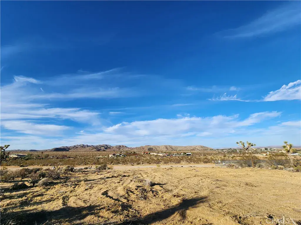 Large 1/2 acre view lot located in South Joshua Tree with high end custom homes in the neighborhood. Close to Joshua Tree National Park and downtown Joshua Tree Village shops, dining and entertainment. Great desert setting with different cactus types and several Joshua Trees on the outskirts of the property plus a large open area for building your dream home in the center of this large lot. The land is slightly elevated to allow for dramatic mountain views and city lights views of Joshua Tree Village at night. Located almost directly across from the popular new Rivian Adventure Network charging station on 29 Palms Hwy. Utilities (water,electric,natural gas,internet,phone,cable) all conveniently located at or near the street. This lot has it all, with a prime location, dramatic views and wonderful natural setting! Don’t miss this unique opportunity…make your offer today!