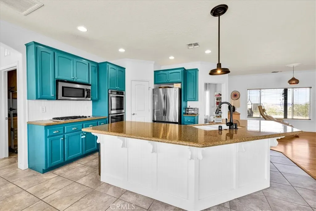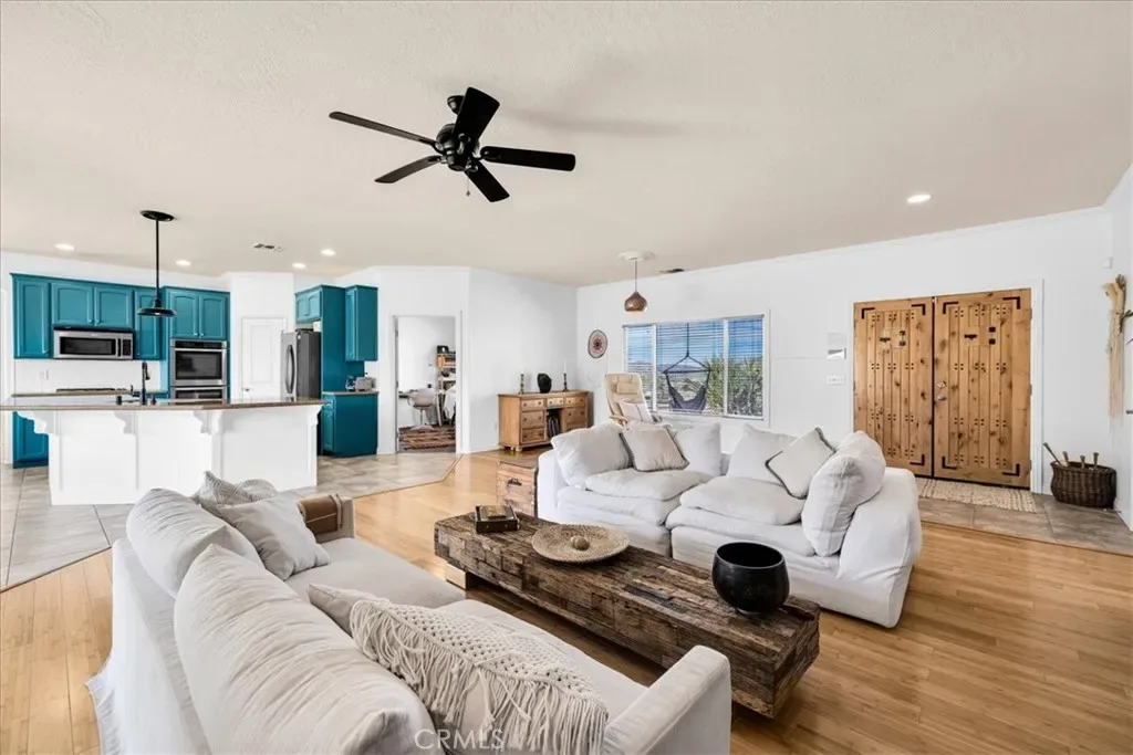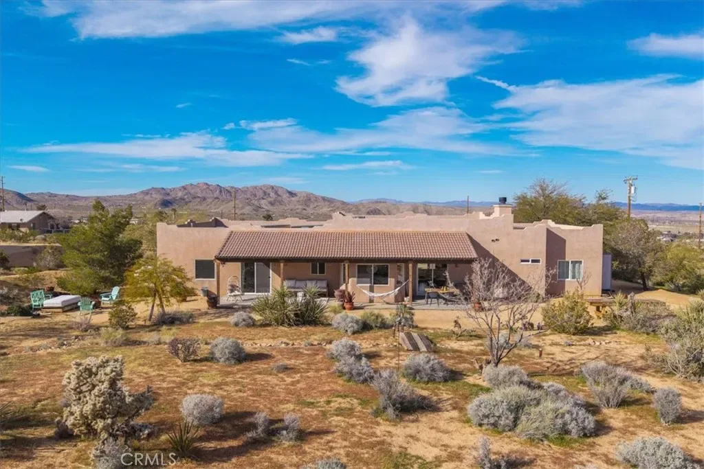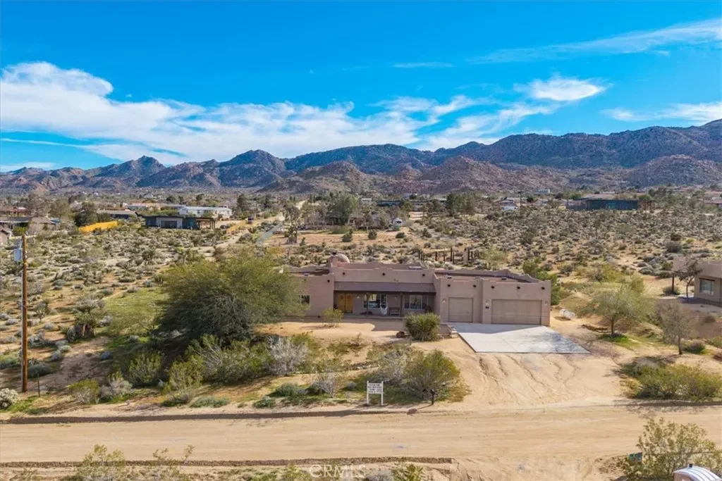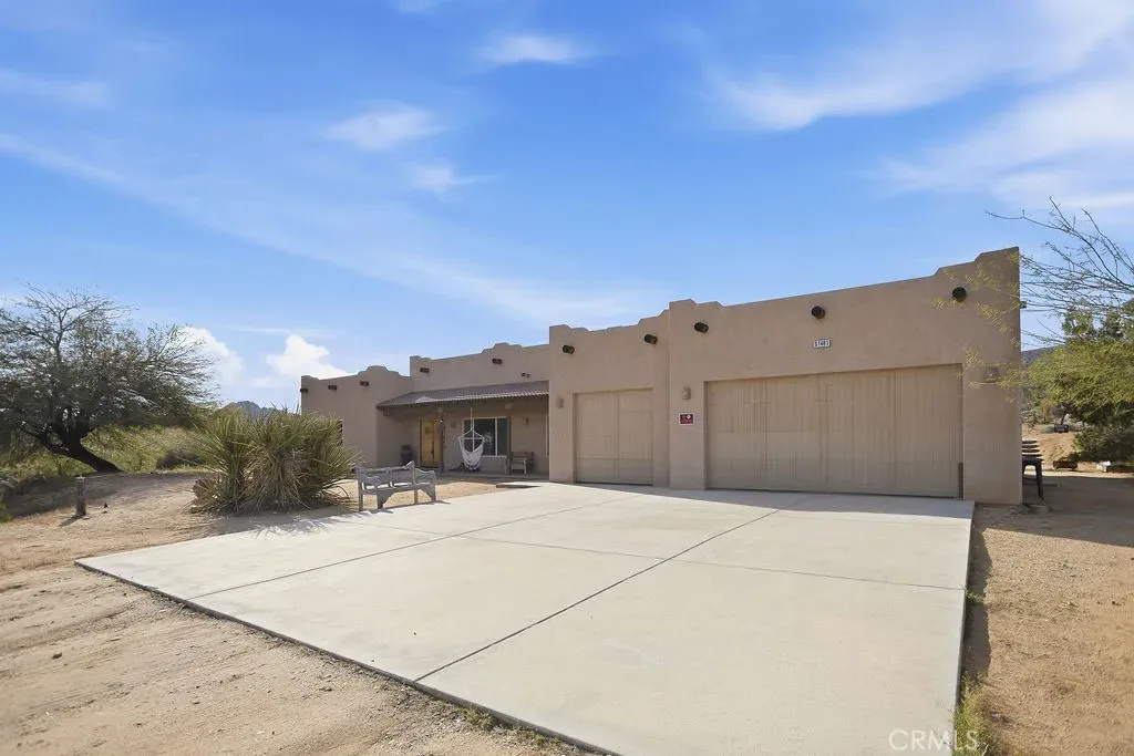 Gorgeous four-bedroom, two-bathroom luxury home with 2,106 sq. ft. nestled on over an acre of prime Joshua Tree land, just minutes from hiking, shopping, dining, and the world-famous Joshua Tree National Park! The drive up to this stunning property sets the mood as you see rolling hills filled with vast desert landscapes and majestic boulder mountains in the backdrop. Upon arrival, you’ll notice a beautiful Santa Fe design, a three-car garage with custom doors, a covered front patio, and a unique double wood door entry.