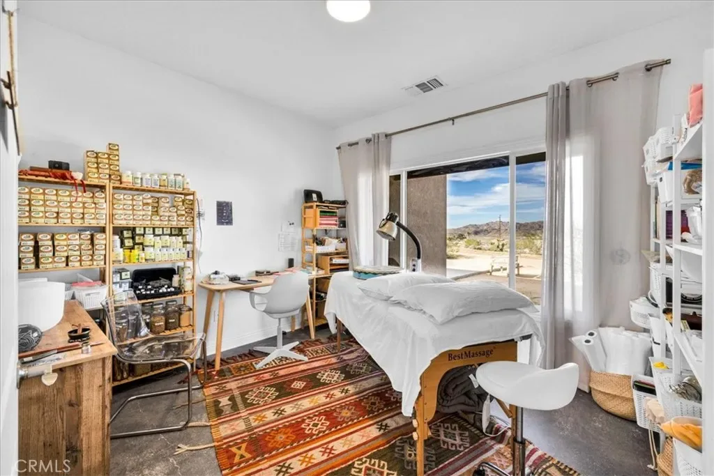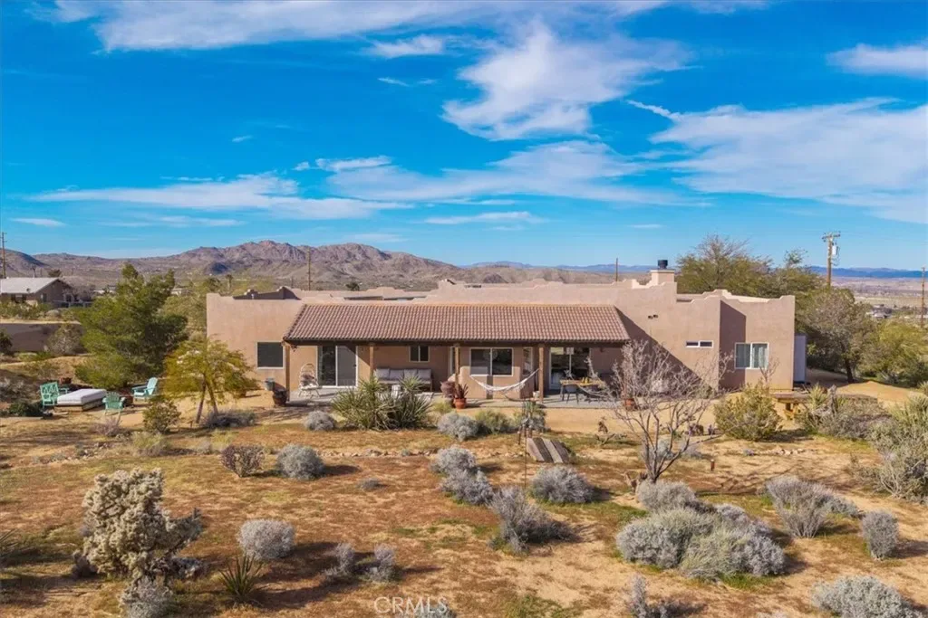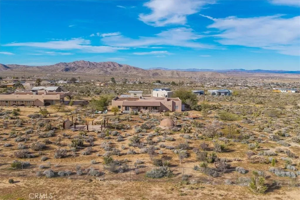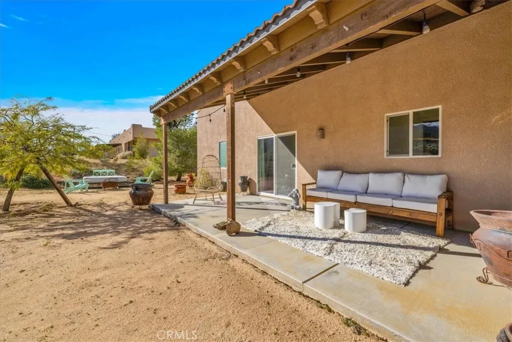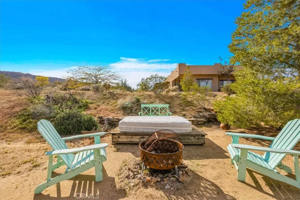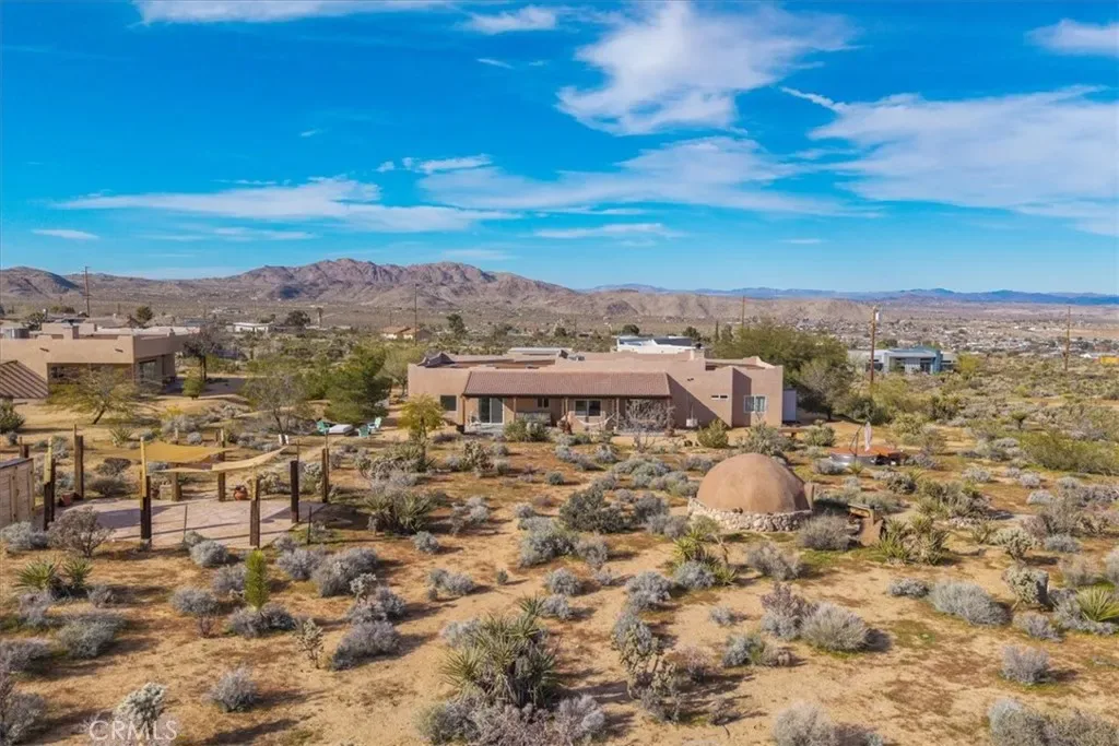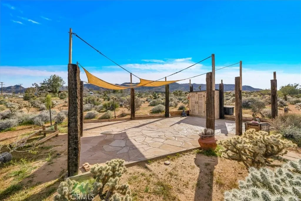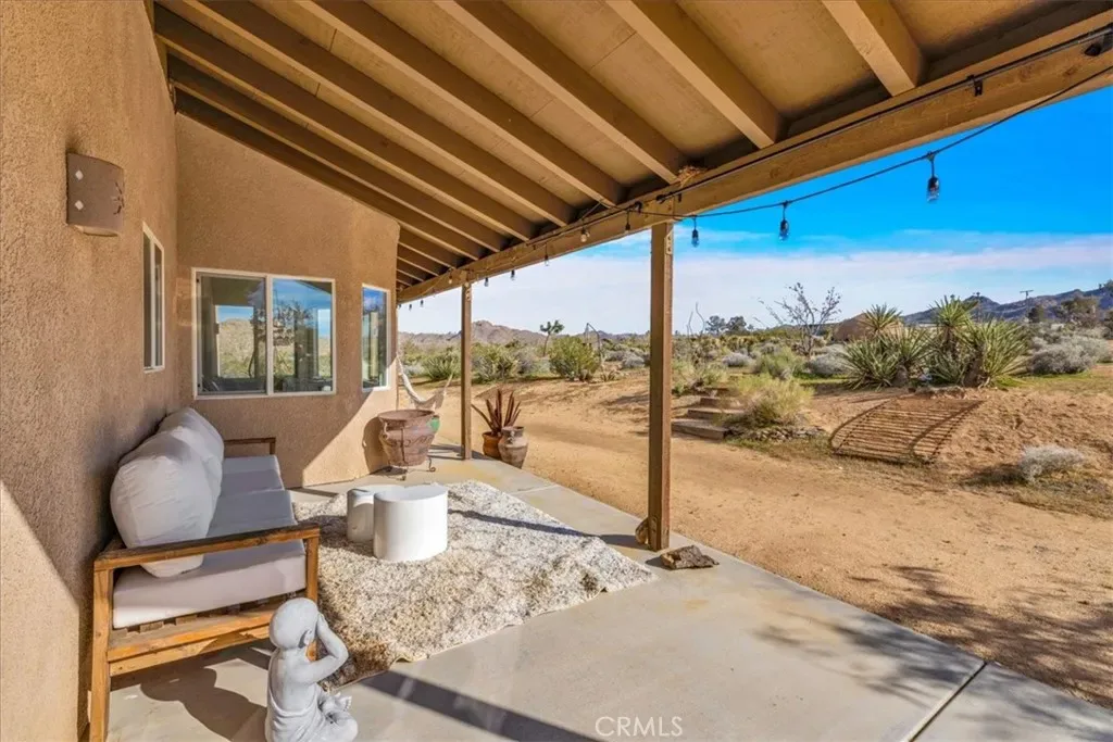 Back outside, you’ll be amazed by the ideal outdoor living space! A large rustic covered patio designed for outdoor dining or as a perfect spot to sit and admire the expansive Joshua Tree skies, incredible views of Joshua Tree National Park, a rare & spacious Temescal sweat lodge, meditation platform, cowboy tub, and more make this not just a backyard but a one-of-a-kind sanctuary!