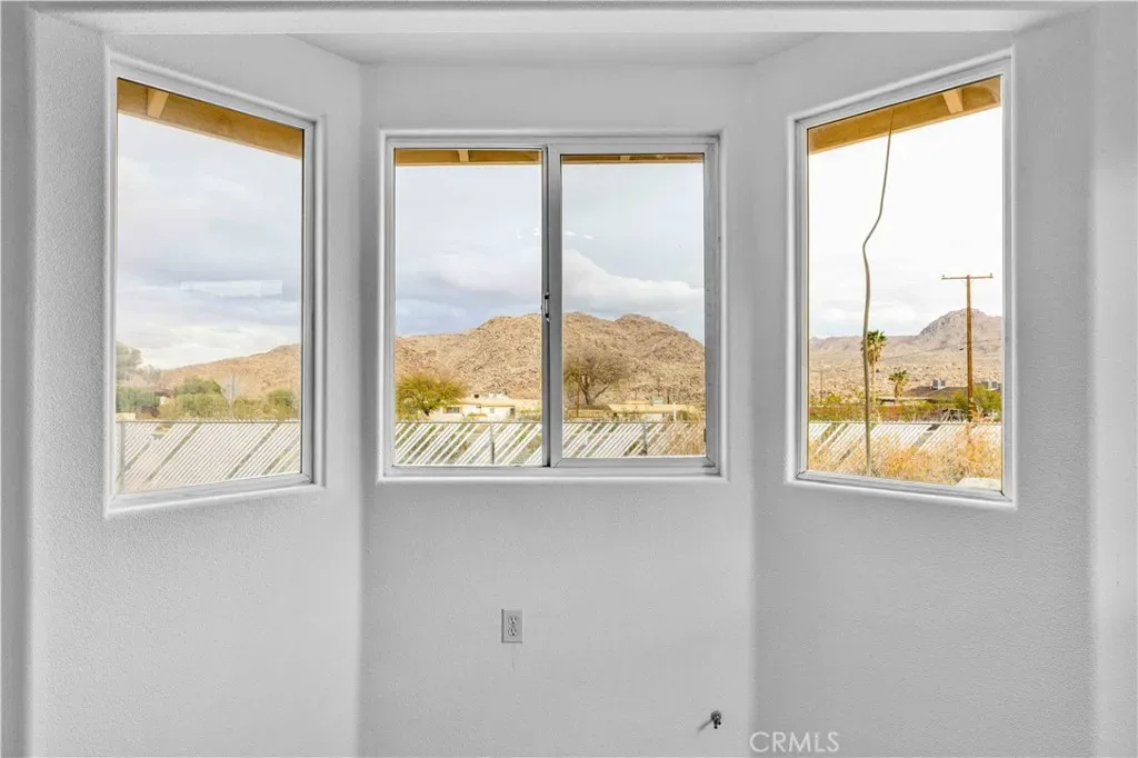 Location, location, location. This remodeled 3-bedroom, 3-bath home is perfectly positioned at the top of the hill between the Joshua Tree National Park entrance and downtown Joshua Tree, placing you just minutes from the area’s popular restaurants, shops, and local attractions. As you arrive, you’ll appreciate the beautiful mountain backdrop along with the functionality of a fenced front yard section and a fully fenced backyard, offering both convenience and privacy. Step inside and you’ll immediately notice the large living room with vaulted ceilings, new luxury vinyl plank flooring, and expansive windows that capture views toward Joshua Tree National Park. The living room is anchored by a wood-burning fireplace with striking floor-to-ceiling tile, creating a stylish focal point and adding a touch of luxury to the space. The remodeled kitchen features attractive countertops, abundant storage, and plenty of counter space, and flows seamlessly into the large dining area, which also enjoys those beautiful desert views. Nearby you’ll find a convenient half bath along with an indoor laundry room. Moving through the rest of the home, the primary bedroom is generously sized and includes a walk-in closet and a remodeled ensuite bathroom. The two additional bedrooms are both well-sized, and the guest bathroom is centrally located and features a shower-tub combo. Additional features include a fully finished two-car garage for parking, storage, or additional workspace. With the major updates already completed, this home is move-in ready and offers incredible flexibility. Its prime location makes it an excellent candidate for a short-term rental, while also serving perfectly as a primary residence or desert getaway. Homes in locations like this rarely come available—schedule your showing and see what makes this Joshua Tree property so special.