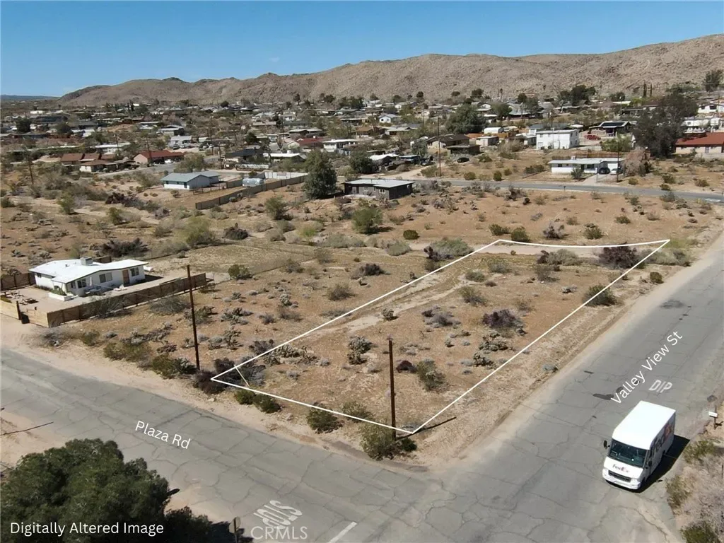 Rare opportunity to secure just under half an acre in the heart of Joshua Tree’s highly desirable Old Town West neighborhood. Positioned on a prime corner just off Plaza Rd and Valley View St, this property offers exceptional visibility, access, and convenience in one of the most sought-after areas of town. The parcel sits within short walking distance of Downtown Joshua Tree, allowing easy access to the community’s well-known restaurants, art galleries, local shops, and vibrant desert culture. Opportunities to own land this close to the center of town while still enjoying the space of a just-under-half-acre lot are becoming increasingly limited. Utilities appear to be nearby, with power poles located at the front of the property and water available in the street, creating promising potential for future development or investment. Whether you’re envisioning a desert home, a creative retreat, or simply securing land in a prime Joshua Tree location, this parcel offers both convenience and long-term appeal. Buyer to verify zoning, access to utilities, and all development possibilities. Lot lines shown in photos are approximate.