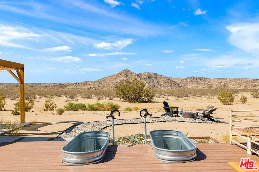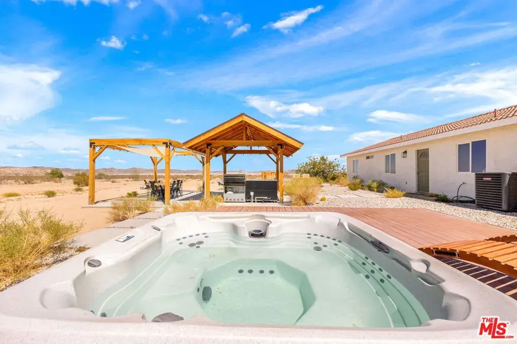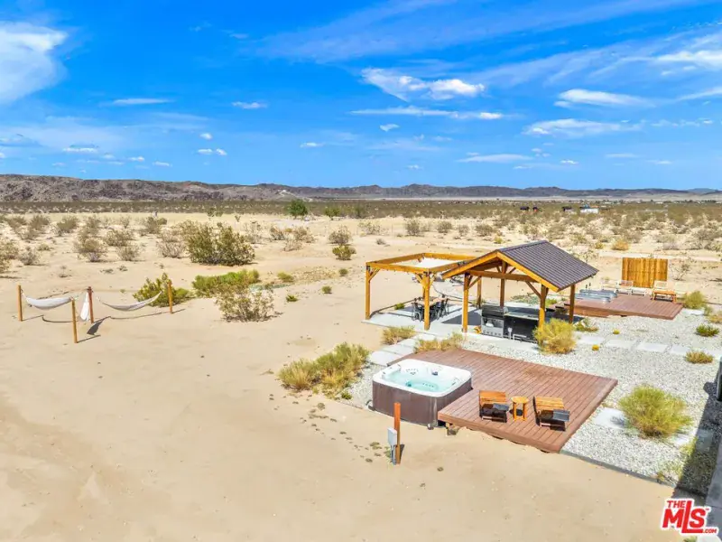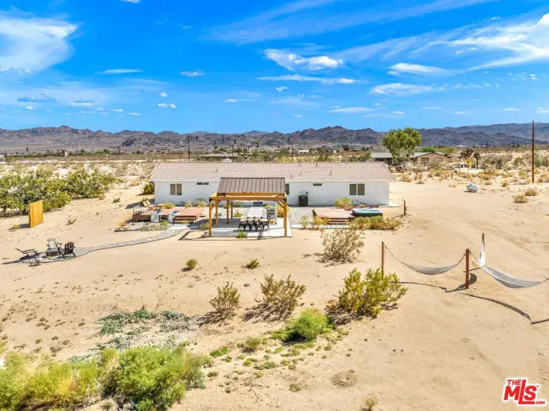 At the end of a fully paved road sits this 1,872 sq.ft. 3BD/2BA, fully furnished and recently remodeled Joshua Tree home. From either the front door or the direct access from the garage, one is greeted by a large open living space. Just off the dining area is the separate kitchen area with newer stainless-steel appliances and a large window to take in the mountain views. On one side of the home is the primary suite with a walk in closet and private bathroom. The other side of the home is rounded out by two additional bedrooms and a full-size bathroom. Step outside to the back where various entertainment hubs are aplenty. Enjoy gourmet meals from the built-in BBQ area under the gazebo. A hot tub and cold plunge baths provide aquatic activities in all climates. Finally, if you are looking to just relax, one can swing in the breeze on a hammock or get cozy around the firepit. Property has been used as a STR, and financials are available. Sitting on over two (2) acres of land, this home is perfect for those looking to balance privacy with easy access to the town’s amenities. NOTE: For paved road access, please use Sunfair Road for access to Broadway. DO NOT use Sunburst Avenue.