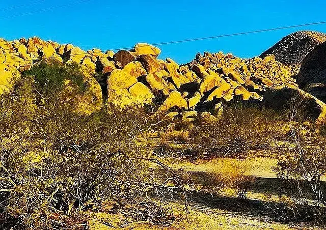 1 and 1/4 acres, corner lot at Mile Square Road and Foothill Drive. Paid water meter, Joshua Basin Water District. The property lies 1,240 feet from Joshua Tree National Park and the south adjacent property is the world class garden of Villa dei Fiori which can be seen in the photos. . To the north lies Casa Mila, a 3,000 sq. ft. recently built Southwestern colonial style house. The corner lot is basically level, sloping to the north. Bighorn sheep herds come down from the boulders to the property across Foothill, Bobcats, hawks, owls, and foxes live in the rocks, a perfect place to enjoy wildlife.