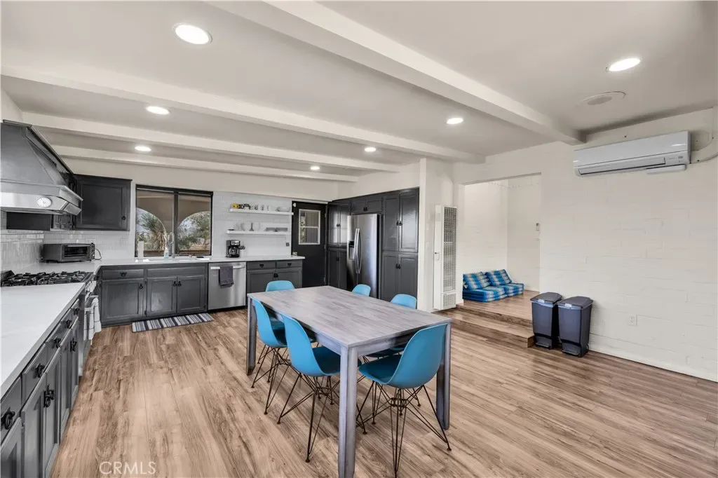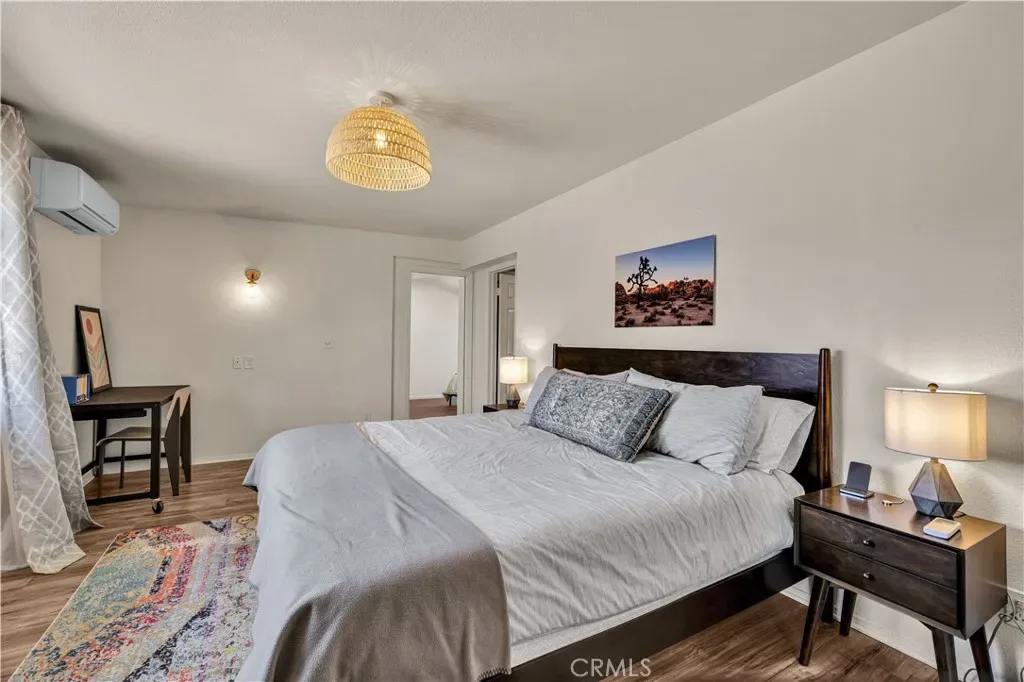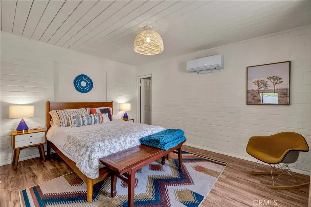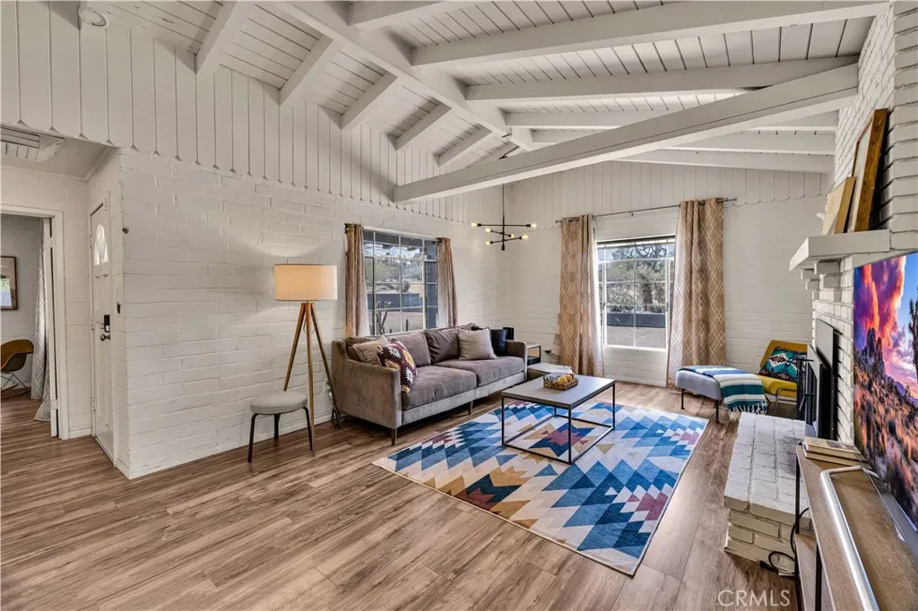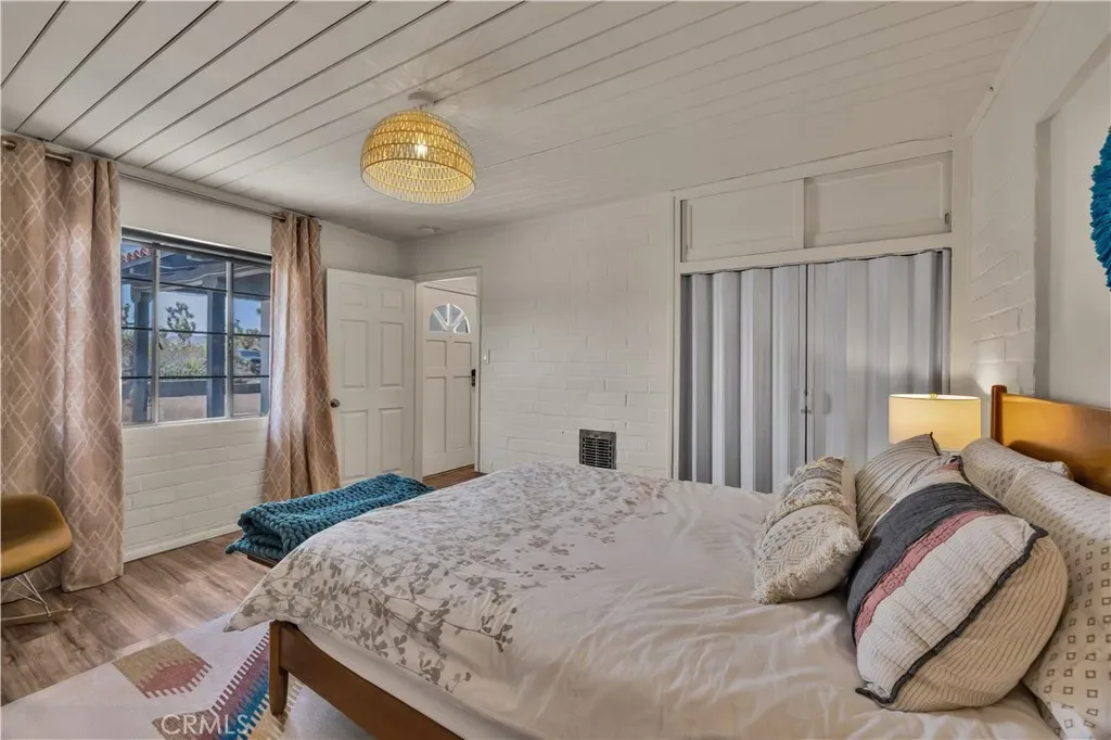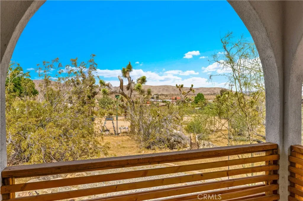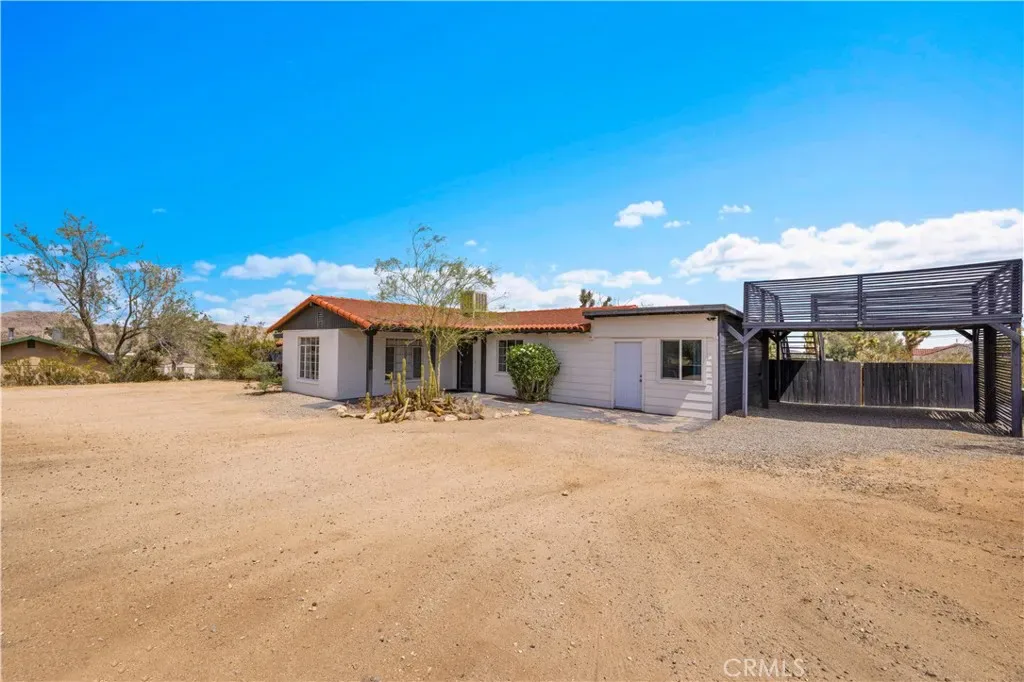 Wonderful Joshua Tree home full of character on a fully fenced 1.25-acre lot and on a paved road. This unique property blends natural desert beauty with thoughtful landscaping, creating a setting that feels perfectly integrated with its surroundings. As you arrive, you’ll appreciate the long driveway that runs through the property to the carport, offering plenty of space and functionality. The carport also serves as a dual-purpose observation deck, providing a great vantage point to take in the surrounding desert views. Step inside and you’ll immediately notice the home’s distinctive character, featuring masonry walls, tall vaulted ceilings, and an abundance of windows that fill the space with natural light. The living area includes a fireplace with a wood-burning stove insert, adding warmth and charm. The kitchen is exceptionally large, offering an impressive amount of cabinet storage, counter space, and quartz countertops. There is ample room for dining, and the view from the kitchen sink looks out to the backyard. Just beyond, the back patio is a standout feature, designed with large rounded archways that beautifully frame the natural desert landscape. All of the bedrooms are generously sized, and the home is equipped with mini-split systems throughout for efficient heating and cooling. The bathroom has been remodeled and features a large vanity with matching finishes to the kitchen along with a tile shower-tub combo. Outside, you’ll find multiple seating areas to relax and enjoy the peaceful surroundings, along with a cross-fenced section that is perfect for pets or added functionality. This is a rare opportunity to own a property that offers space, character, and a true connection to the Joshua Tree landscape.
