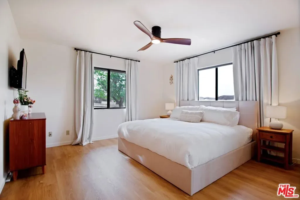 This rare 1985 ranch home in the heart of Joshua Tree offers a unique blend of heritage, space, and modern upgrades. Situated on a massive 1.25-acre flat, usable lot. Step inside to a thoughtfully updated 3-bedroom, 2-bathroom layout that balances its traditional ranch roots with clean, contemporary finishes. Recent interior enhancements include new luxury vinyl flooring throughout, which provides a seamless, durable, and stylish foundation for any decor. Freshly updated smooth ceilings, most walls, and new window treatments throughout the home create a bright, polished atmosphere. New, modern ceiling fans in the living room and bedrooms. This home offers a functional, accessible floor plan perfect for owners and guests alike. Step inside to a thoughtfully updated 3-bedroom, 2-bathroom layout that balances its traditional ranch roots with clean, contemporary finishes. Adventure-Ready, with extensive RV and Boat access, on a lot that easily accommodates multiple large-scale vehicles. The exterior grounds are as versatile as they are beautiful. Fully enclosed with fencing (while extending beyond the fence lines), the lot offers breathtaking vistas. Unobstructed desert and mountain views, and some of the most spectacular sunset skies in Southern California. Prime Location: Nestled on a quiet street just minutes from Joshua Tree National Park, downtown shopping, and the vibrant culture of Yucca Valley and Palm Springs. Unmatched Workspace & Storage! A property that is a dream for hobbyists, adventurers, or those needing extra square footage. Attached Parking in the convenient 2-car attached garage with direct access and a secondary detached garage/workshop, perfect for creative projects, a home gym, or additional secure storage. There is plenty of room to build an ADU or other separate living or work spaces. Whether you are an investor looking for a high-potential rental, a developer, or a buyer seeking a private desert sanctuary, this property is a rare find that combines classic desert charm with modern “move-in ready” essentials. Your life in the famed Joshua Tree is waiting for you!