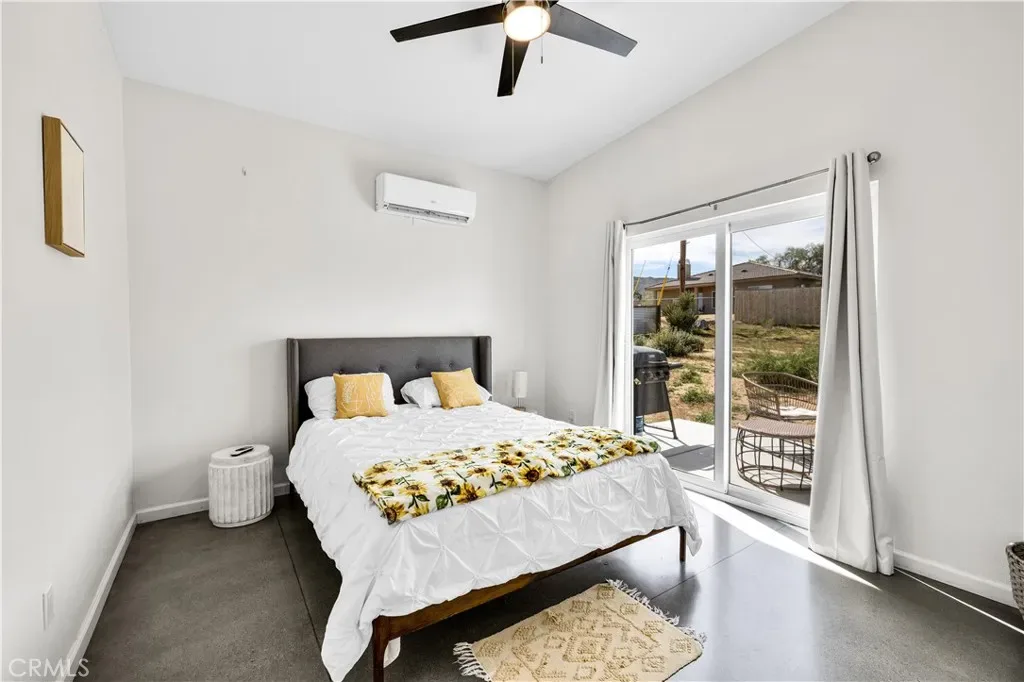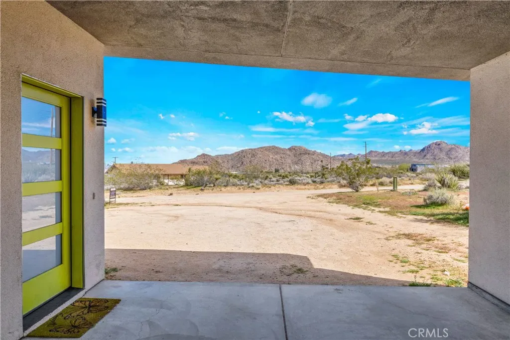Newer construction home built in 2022, perfectly located close to the Joshua Tree National Park entrance and just over one mile from downtown Joshua Tree. This modern property is currently operating as an active short-term rental and offers a stylish desert retreat with incredible views and a thoughtfully designed layout. As you step inside, you’ll immediately appreciate the open-concept design that feels light, bright, and airy. A large bank of windows captures stunning views of Joshua Tree National Park and the surrounding mountains, creating a beautiful focal point throughout the main living space. The kitchen is generously sized and offers ample storage and counter space, flowing seamlessly into the living area for a comfortable and functional living environment. The bedroom is well-sized and features an ensuite bathroom complete with a shower-tub combo and the convenience of an indoor stackable washer and dryer. Step outside to the backyard where you’ll find a patio area with a jacuzzi tub, plenty of space for outdoor seating, and privacy fencing that creates a relaxing desert oasis. In addition, a large carport provides covered parking and can also function as an additional shaded patio space. Whether you’re looking for a second home, desert getaway, or income-producing property, this modern home offers an exceptional location, beautiful views, and proven short-term rental potential just minutes from the park and the vibrant shops and restaurants of downtown Joshua Tree.