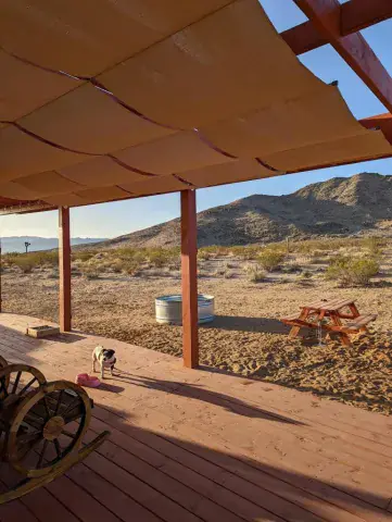 Stunning 1.97 Acre View Parcel in Joshua Tree! Rare opportunity to own a spacious lot with breathtaking mountain views and direct sightlines toward Joshua Tree National Park. Surrounded by wide-open desert and bordering BLM land, this property offers exceptional privacy and endless outdoor access right from your doorstep. Ideal for a custom home, desert retreat, or horse property, with plenty of room to build and explore. A storage container is already on site, along with RV parking and shade structure with an alternate septic system that has been installed and certified as usable (not permitted). Water is connected. Enjoy star-filled night skies, peaceful surroundings, and the natural beauty that makes Joshua Tree world-famous.Buyer to verify all aspects of property condition, utilities, zoning, permits, and land use.