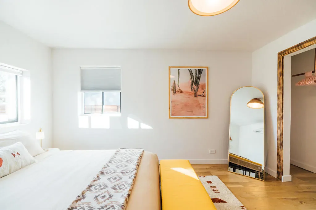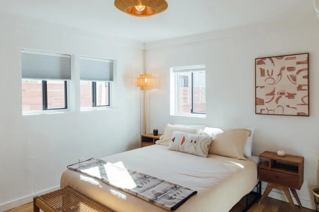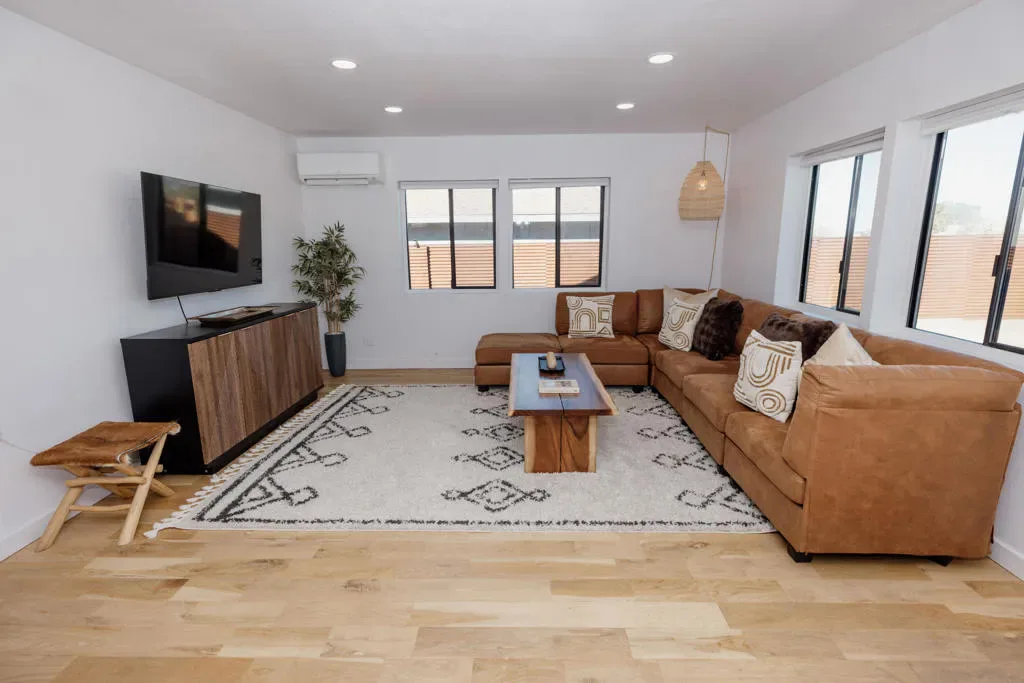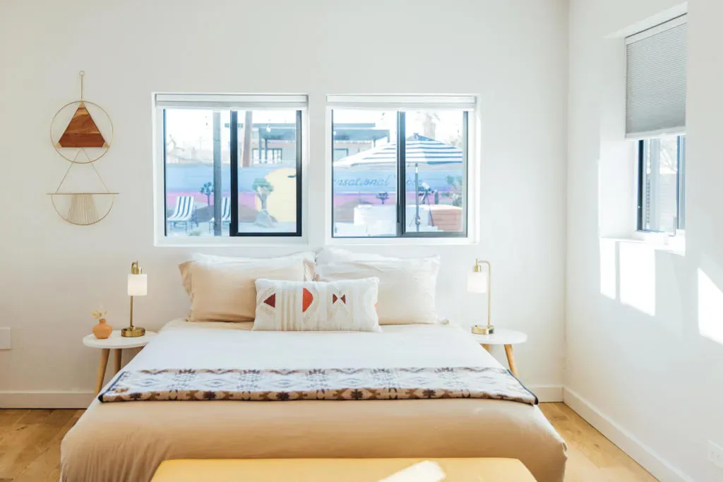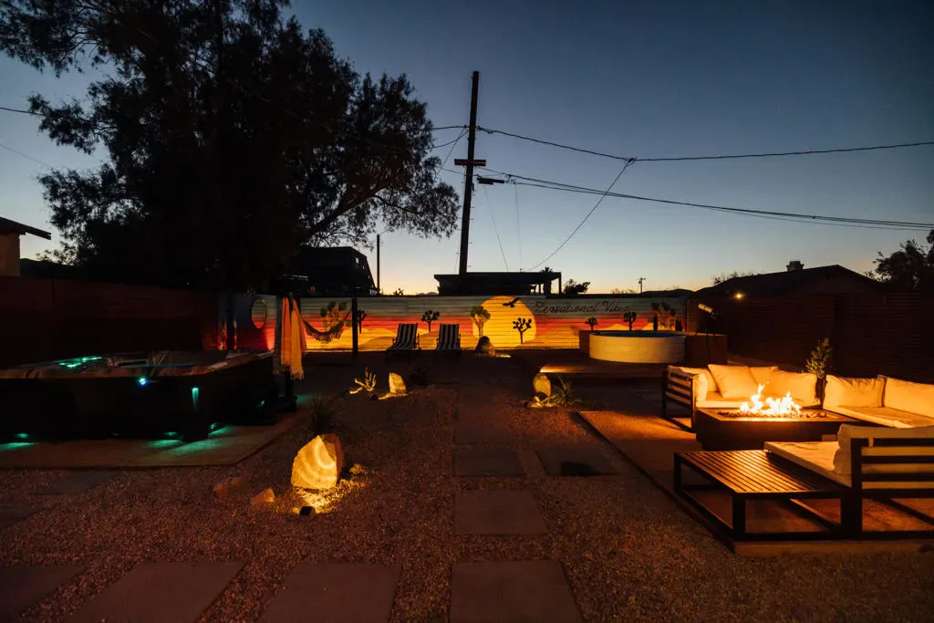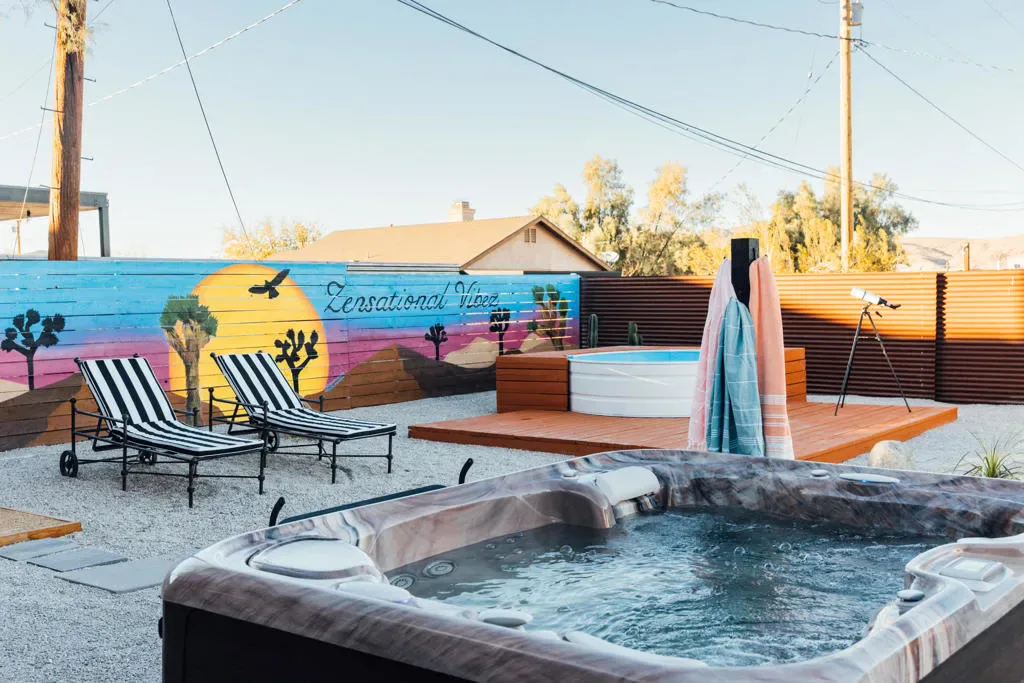 Located just minutes from downtown Joshua Tree and the west entrance of Joshua Tree National Park, this beautifully curated 2-bedroom, 1-bath home offers effortless desert living with a true resort-style feel. Fully furnished and thoughtfully equipped, it’s move-in ready whether you’re looking for a full-time residence, a weekend escape, or a turnkey rental opportunity.Inside, the home feels open and inviting, with natural light illuminating each space. The living area flows seamlessly into the updated kitchen, creating a welcoming environment for both quiet mornings and lively gatherings. Two bedrooms feature queen-size beds and generous closet space, while the spa-like bathroom offers a soaking tub, double vanity, and a clean, modern aesthetic.It’s the backyard that truly elevates this home. Fully fenced and exceptionally private, it feels like your own personal hideaway. Cool off in the cowboy pool, unwind in the sauna or jacuzzi, or rinse off under the outdoor shower. As the sun sets, gather around the fire pit or fire up the grill for dinner under the stars. Hammocks and lounge areas invite you to relax beneath the desert sky, while vibrant murals add a playful pop of color. A dedicated laundry and storage room adds everyday convenience without compromising the serene outdoor space.Mountain views greet you from the front porch, while downtown shops, restaurants, and galleries are just a short walk or bike ride away. Stylish, fully equipped, and ready to enjoy, this Joshua Tree retreat offers flexibility, privacy, and lifestyle, all in one unforgettable setting.
