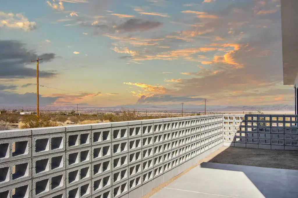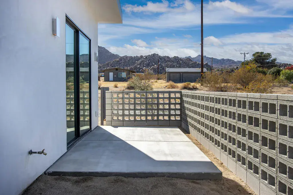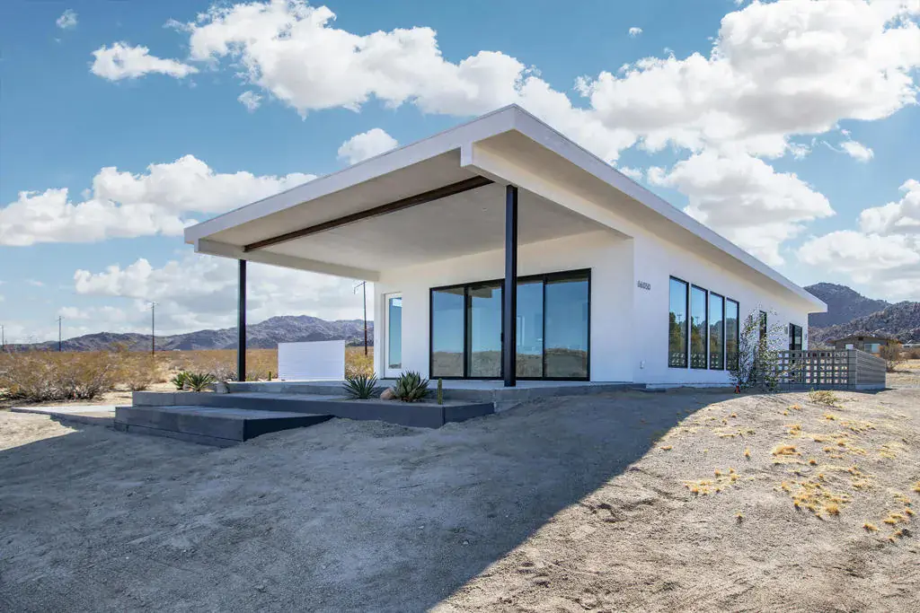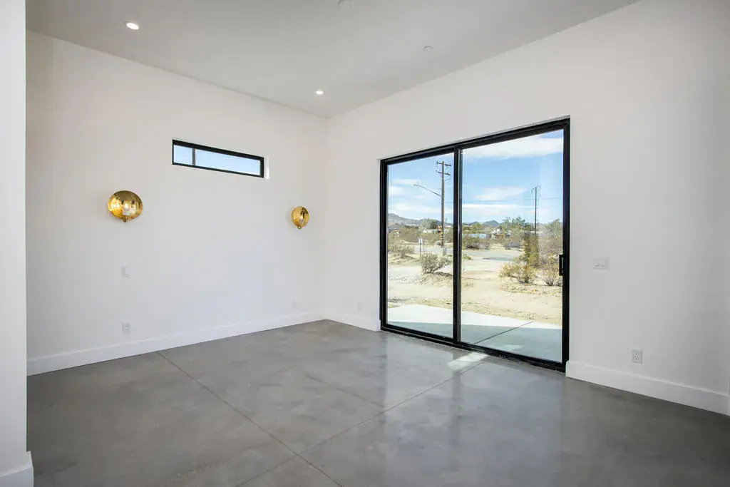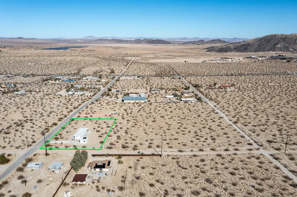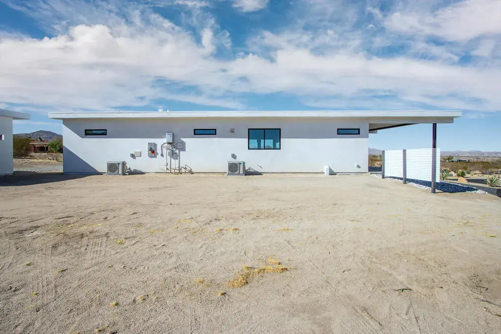 Immaculate new construction perched on a gentle slope in the highly coveted Panorama Heights neighborhood of Joshua Tree. 2 bed 2 bath with high ceilings & expansive windows that bring in beautiful natural light. 1.01 ample acres with desert fauna that offers peace, serenity, & ample space. Property features a finished detached garage with ADU potential & Paid Solar & backup battery! Upgraded sliding glass doors open to an oversized covered patio. Inside you’ll find a beautiful island style kitchen with stainless steel new appliances, pendant globe lighting, breakfast bar, long counters, shelves, with generous cupboards & cabinets. Main bedroom enjoys a wide closet with a loft shelf. Main bath adorned with upgraded cladding, tile floors, glass wall & raindrop shower with a contemporary freestanding bathtub. Separate laundry area with new washer/dryer. Hallway bathroom with raindrop shower head, hexagon mosaic tile, bathtub, & sleek floating vanity with vessel sink. Property also features upgraded concrete work & block wall. Located just a half mile to a newly open trendy coffee & cocktail lounge. Perfectly located to tour Indian Cove for hiking, & the Joshua Tree National Monument where about 3 million tourists visit annually. 2 miles to Copper Mtn College. Organic cafes, restaurants, & the JT Saloon in the nearby Joshua Tree Village. 40 miles to Palm Springs. 133 miles to LA. Must see for a primary residence, rental, and investment!