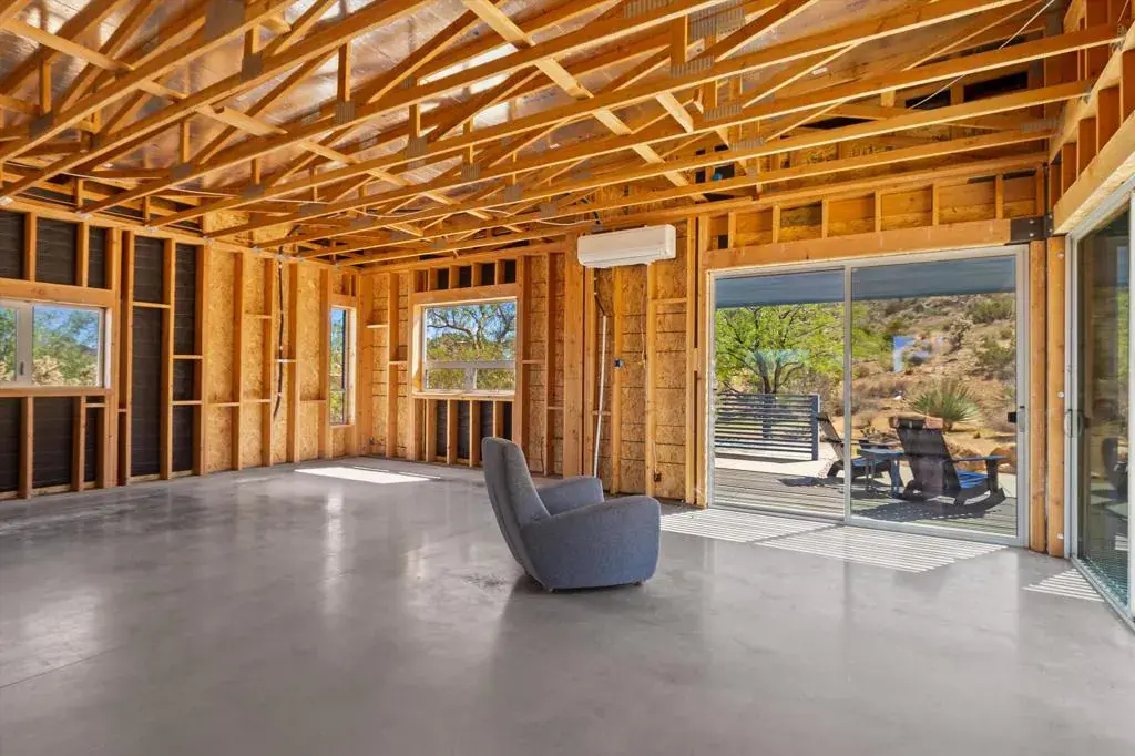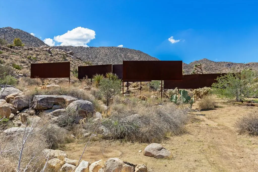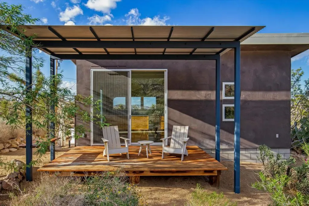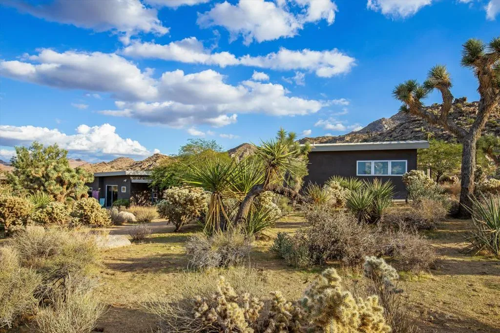 Nestled in the prestigious neighborhood of Joshua Tree Highlands, a unique opportunity to own a 2+ acre compound boasting two modern homes awaits. The main home was built in 2010, and the guest house followed shortly after in 2014, both by famed local builder David Eckenroth. Peace and tranquility, just minutes from the National Park’s west entrance gate. The main house is a blank canvas ready to be transformed into your dream retreat. With an open-concept layout, sleek concrete floors, lofty ceilings, and outdoor shower, the space awaits your design direction and showcases panoramic views in every direction. The guest home offers privacy and versatility, with its own deck showcasing awe-inspiring views and outdoor bathing under the stars. Inside, custom cabinetry and polished concrete floors echo the main house’s contemporary footprint. This space serves as an ideal guest suite, art studio, or office, just waiting for the finishing touches to be added. Immerse yourself in the quiet and serene ambiance of Joshua Tree, with expert planting of intentional and curated desert vegetation, iconic desert topography including boulders and Joshua trees. This compound is a true escape, offering endless potential for investors, artists, or anyone seeking a modern sanctuary in the desert.