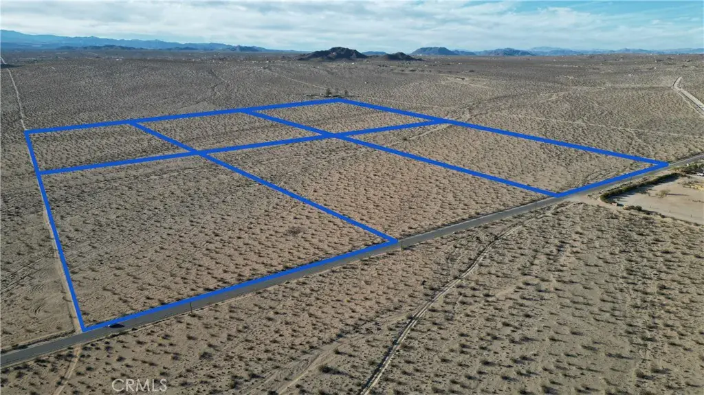 Embrace the boundless potential of these exceptional desert parcels! Whether you are envisioning a personal sanctuary or a development project, seize the opportunity to secure 1, 2, 3, 4, or all 5 of these contiguous lots, totaling an impressive 91 acres (each separately listed). Nestled amidst the breathtaking natural landscape, this expansive canvas offers the perfect setting for your dream desert compound or community. Picturesque open-sky sunrise to sunset vistas, sweeping sandy panoramas, and majestic rugged mountains set the stage for a truly captivating living experience. Adventure awaits with endless opportunities for wilderness exploration. Embark on thrilling hikes, traverse off-road trails, immerse yourself in the vibrant hues of wildflower blooms, or lose yourself in the mesmerizing spectacle of stargazing beneath the pristine dark skies. Conveniently located adjacent to Joshua Tree Lake RV and Campground, home of the renowned Joshua Tree Music Festival (voted #1 Best Music Festival in USA TODAY Readers Choice for 2024!) and a mere 14 miles from the iconic Joshua Tree National Park, this rural haven strikes the perfect balance between seclusion and accessibility. Enjoy the tranquility of your private oasis while still being within easy reach of the eclectic charm of downtown Joshua Tree, the electrifying energy of Indio’s renowned festivals such as Coachella and Stagecoach, or the cosmopolitan dining scene of Palm Springs. Explore the possibilities with the County regarding potential development opportunities, whether it’s building multiple units or subdividing to meet the demand for sought-after housing. Seize this extraordinary chance to unlock the limitless potential of these remarkable properties and embark on a journey where the only limit is your imagination. Your desert paradise awaits!