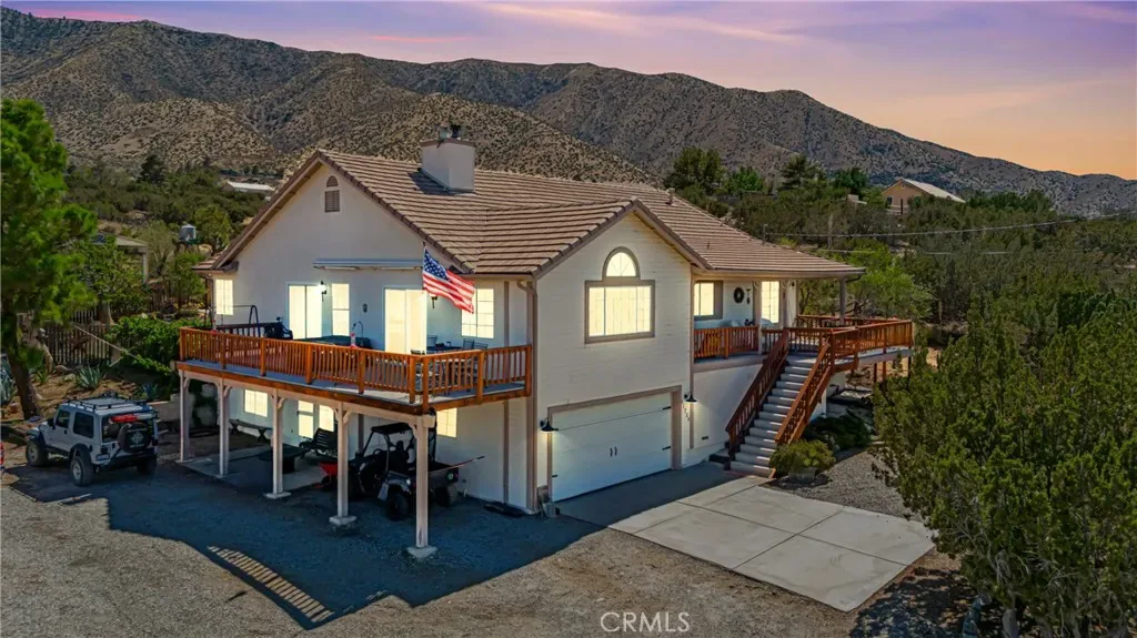 Grand Ranch Two-Story Estate in the Scenic Juniper Hills Community. This Warm & Inviting Estate Nestled in the Picturesque Juniper Hills Sitting on 2.50 Acres of Serene, Usable Land with Breathtaking Panoramic Views of the Mountains. This Gorgeous Home Offers Four Bedrooms & Three Bathrooms Featuring 3,188 sq. ft. of Thoughtfully Designed Living Space. This Custom Two-Story Home is Perfect for those Seeking Privacy, Space, and Versatility. Step Into a Home that Exudes Rustic Ranch Charm, with Classic Country-Style Architecture & Rich Wood Features Throughout, Including Exposed Beams, Wood-Paneled Accents, & Warm Finishes that Give the Home a Cozy, Timeless Feel. The Spacious Living Areas are Anchored by a Charming Potbelly Stove, Perfect for Gatherings on Cool Evenings. The Chef’s Kitchen Featuring Ample Cabinet Space, a Large Center Island with a Built-In Range & a Breakfast Bar. The Open-Concept Dining Room Flows Seamlessly into the Patio Deck Complete with a Stylish Atmosphere for Effortless Gatherings. Cozy up During Winter Nights by a Stunning Rock Fireplace in the Luxurious Primary Suite. The Primary Suite Boasts a Large Walk-In Closet & an En-Suite Bathroom with a Large Custom-Tiled Shower & a Soaking Tub that Looks Out onto a Peaceful Patio Oasis. The Guest Bathrooms are Tastefully Decorated with a Ranch-Inspired Feel, Featuring Rustic Finishes & Natural Tones that Perfectly Complement the Home’s Country Aesthetic. Additional Features Include a Private Well for Water Independence, & Two Oversized Covered RV Garages, One of Which Includes a Fully Covered Carport Providing Ample Space for RVs, Boats, Trailers, or Extra Vehicles. Downstairs, You’ll Find a Cozy Ranch-Style Game Room with Its Own Built-In Bar & Fireplace, along with a Full Bathroom, an Ideal Space for Entertaining, a Private Guest Suite, or Multi-Generational Living. Looking for a Private Retreat, or Equestrian Property! Juniper Hills is a Hidden Gem Offering Rural Charm with City Convenience