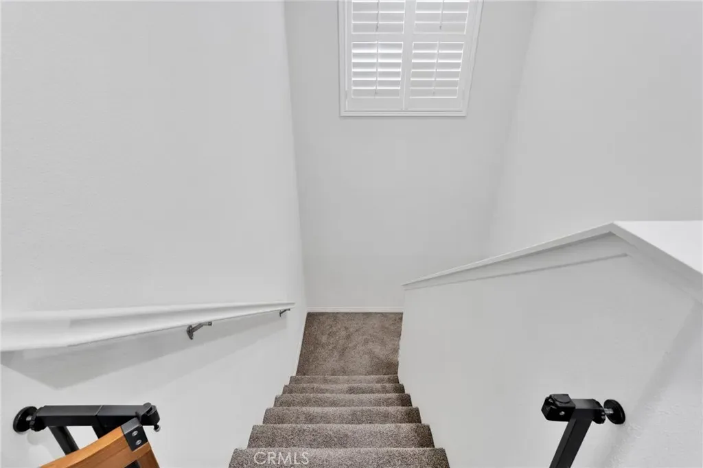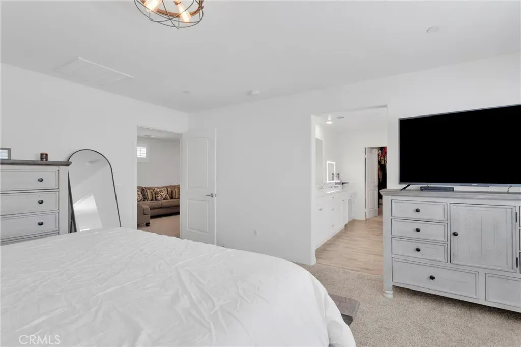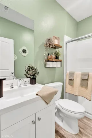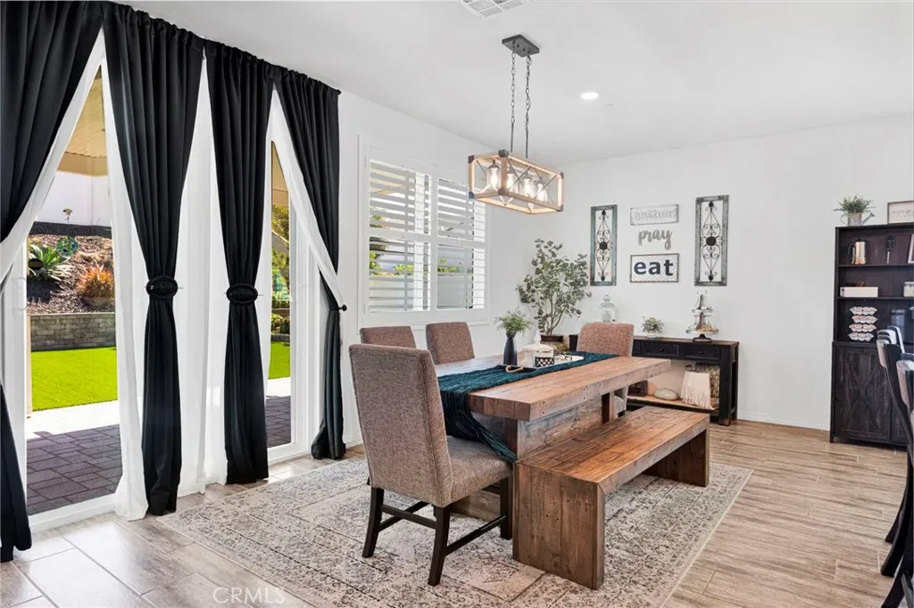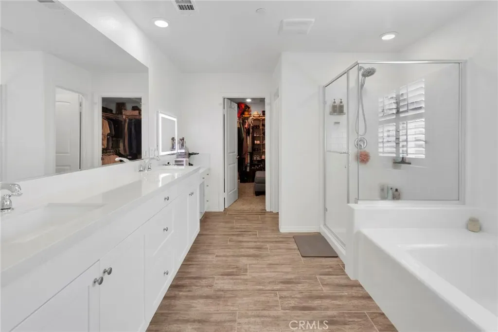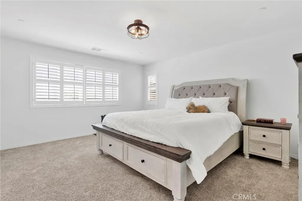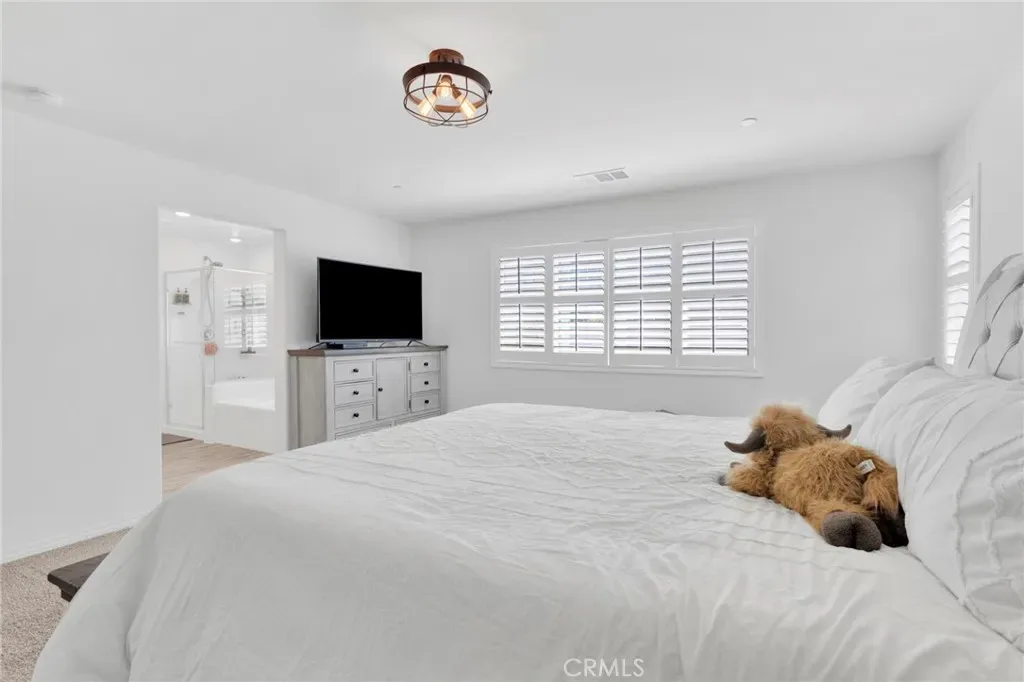 Welcome to this near-new, beautifully upgraded multi-generational home located in the desirable Shadow Rock community of Jurupa Valley! Boasting over 2,800 sq ft of living space, this thoughtfully designed home offers 5 bedrooms and 3 full bathrooms, including a spacious downstairs bedroom and full bath—perfect for guests or extended-family-style living. The home features an open-concept floor plan, with the kitchen overlooking the great room, creating the perfect space for entertaining and everyday living. The kitchen is truly the heart of the home, showcasing an oversized island, sleek white cabinetry, granite countertops, newer stainless steel appliances, and a large walk-in pantry with abundant storage. The great room features a cozy fireplace, setting the tone for warm gatherings and lasting memories. Throughout the downstairs and bathrooms, you’ll find neutral-colored designer wood-look plank tile flooring that is both stylish and easy to maintain, while the upstairs bedrooms, stairs, and loft feature durable, water-resistant carpet. Additional upgrades include custom lighting and ceiling fans, plantation shutters throughout, and a host of smart and efficiency features, such as a full interior and exterior security system, FLO by Moen smart water leak detection system, Rain Bird irrigation system with automatic rain shut-off, and Smart ovens controllable via phone. The home is equipped with a generator-ready electrical panel, including an inlet box and transfer switch, providing peace of mind and continued functionality during power outages.
