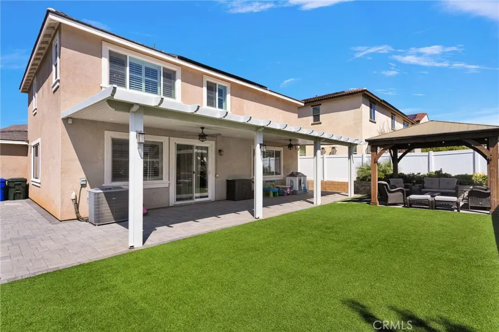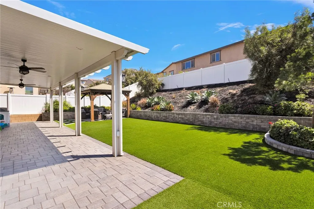Step outside to your private backyard oasis, designed for low-maintenance living and entertaining. Enjoy artificial turf, built-in drainage, paver walkways, and a custom gazebo—perfect for BBQs and gatherings. The extended Alumawood patio cover features lighting and two ceiling fans, allowing you to enjoy outdoor living year-round. There’s even space to add a small pool, spa, or play area. Located near the freeway, major shopping, schools, and within a community offering beautiful parks and walking trails, this home truly has it all.