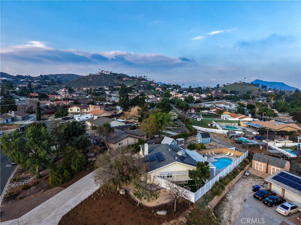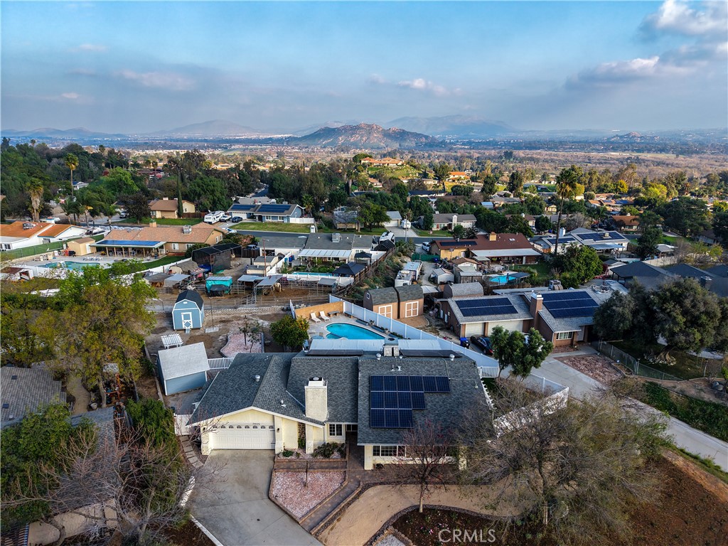 Discover your ideal retreat in the exclusive Jurupa Hills, where this unique 4-bedroom, 2-bath estate sits on just under half an acre in a private cul-de-sac. Commanding beautiful city and mountain views, this home features a fully paid-off 40-panel solar system and a 3-car tandem garage with a rare drive-through garage door with access to the backyard. Tons of storage space with built-in cabinets in the garage. Inside, new waterproof luxury vinyl plank flooring, fresh designer paint, classic wainscoting, ceiling fans, and vaulted ceilings frame the living space, which centers on a cozy fireplace. The gourmet kitchen dazzles with granite countertops, a built-in hood, a Thermador Professional 6-burner range, and a “Super Pantry” with room for an extra fridge and office space. Entertain under the impressive dining room chandelier or retreat to the primary suite with custom closet organizers and a spa-like bathroom featuring dual sinks; both bathrooms have been tastefully updated with a classic luxury look. ADT alarm system w/ touch screen. Outside, the horse-zoned grounds boast room for RV parking, newer vinyl fencing, and two large sheds, including a newer Tuff Shed. Relax by the pool and spa with new perimeter tile, host at the BBQ island and fire bar table, or gather around the side yard fire pit. The backyard also features citrus trees, passion fruit vines, ample garden planters, and a large patio cover with recessed lighting and a new rolled composition roof. With beautiful front slope landscaping and proximity to parks and trails, this view home truly checks every box.