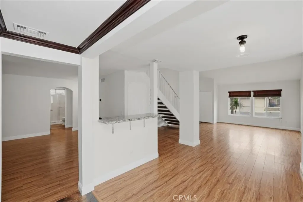 Upon entry, you’re welcomed by soaring vaulted ceilings and an abundance of natural light flowing through the formal living and dining areas, complemented by fresh interior paint and newer flooring throughout both the main level and upstairs. The layout seamlessly connects to the inviting family room, creating a comfortable space for everyday living and entertaining.