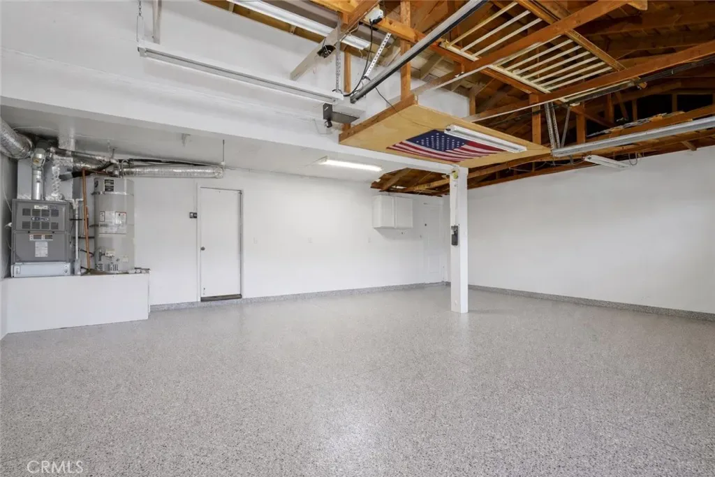 The three-car garage has been upgraded with fresh paint and a durable epoxy floor, offering a clean, finished space ideal for parking, storage, hobbies, or a home gym, along with an extended driveway providing additional parking and convenience.