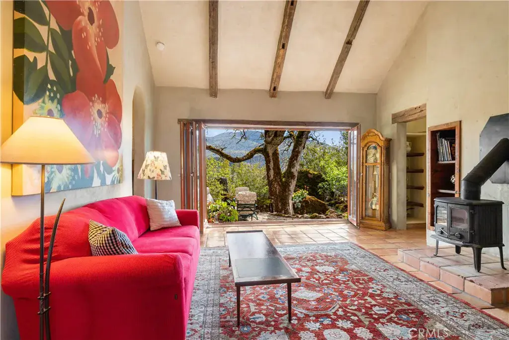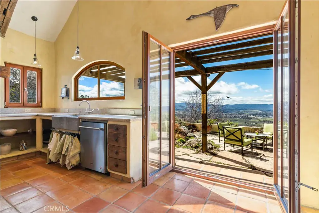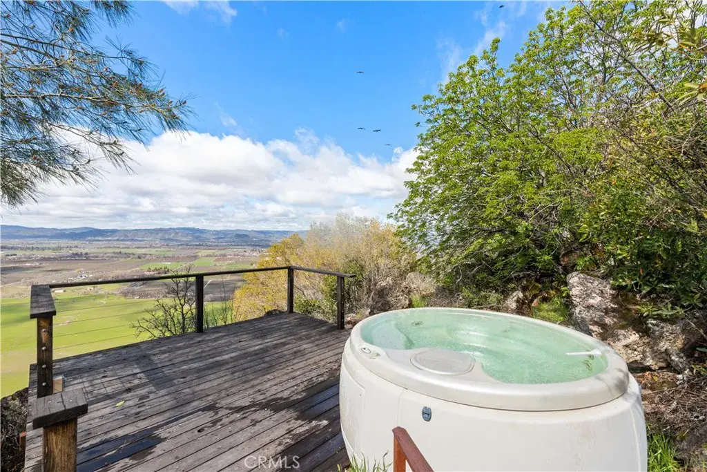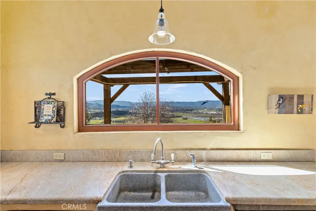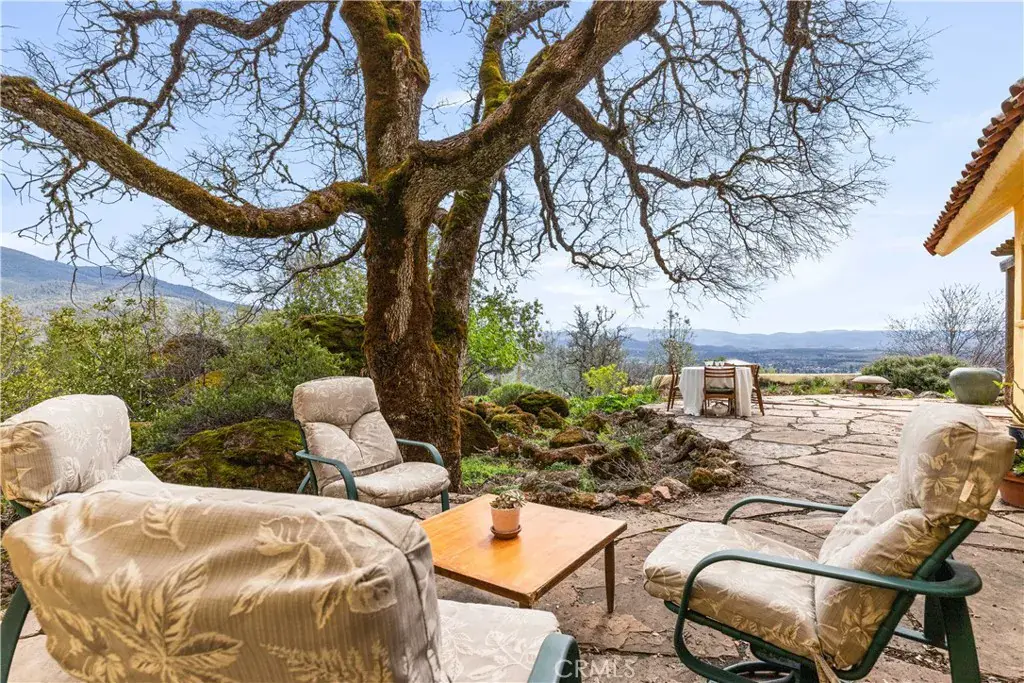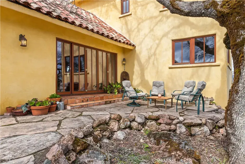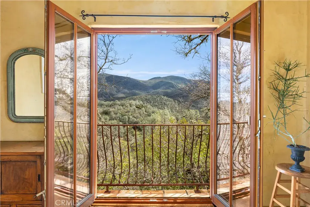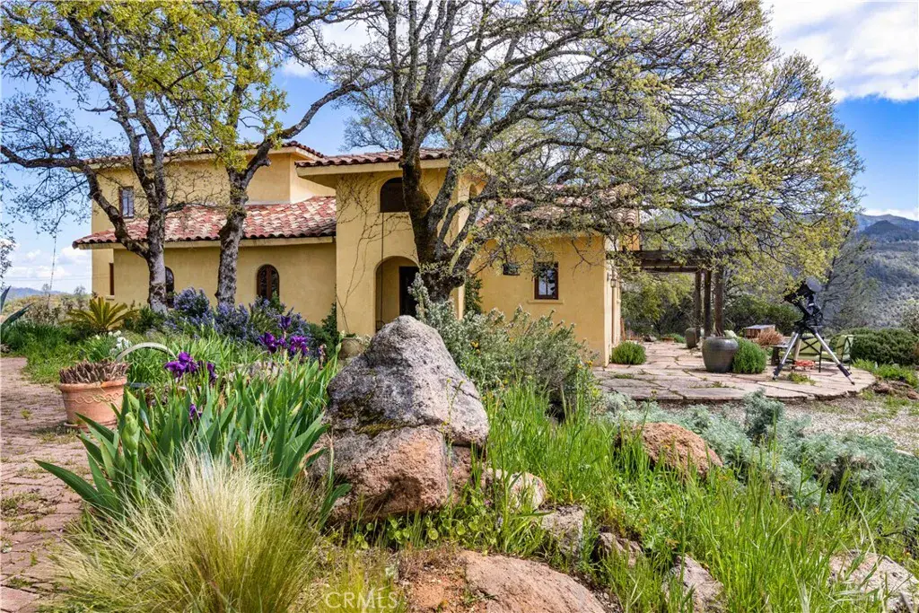 Incredible Tuscan Villa atop Mount Dali-Dona has panoramic views of Clear Lake, Big Valley & Mount Konocti. You will feel like the rest of the world disappears the moment you enter this property. As you make your way up the wildflower-lined driveway, the manzanita and mature oaks will welcome you to this incredible home. The residence is built with imported antique beams, French country-style kitchen with fireplace, quartzite counters, unique old-world aesthetics, heated floors, dual solar/PG&E power, and a wood stove. The property features 3 levels, 3 bedrooms and 3 bathrooms, wine cellar, large basement, formal living room, office, walk-in pantry. Beyond the home large fenced area with irrigated garden beds and a planting shed. A separate building with ADU potential offers storage, 1 half bath, a loft and a sink, adjacent to the vineyard with separate electric meter and septic. 1.6 acres of Rhone grapes and olive trees. Also included is the sale, de-stemmer/crusher, filter press & barrels to produce your own wine! This expansive yet cozy home is full of charm and has unparalleled views from every angle. The estate is situated on 27+/- acres and has gated access. Close to downtown Kelseyville, restaurants and shops. Borders the Clear Lake State Park with great hikes, lake access and camping. Secluded and peaceful, this property offers an incredible opportunity to observe wildlife and disconnect from the day-to-day hassle. Potential for ADU or rental property.
