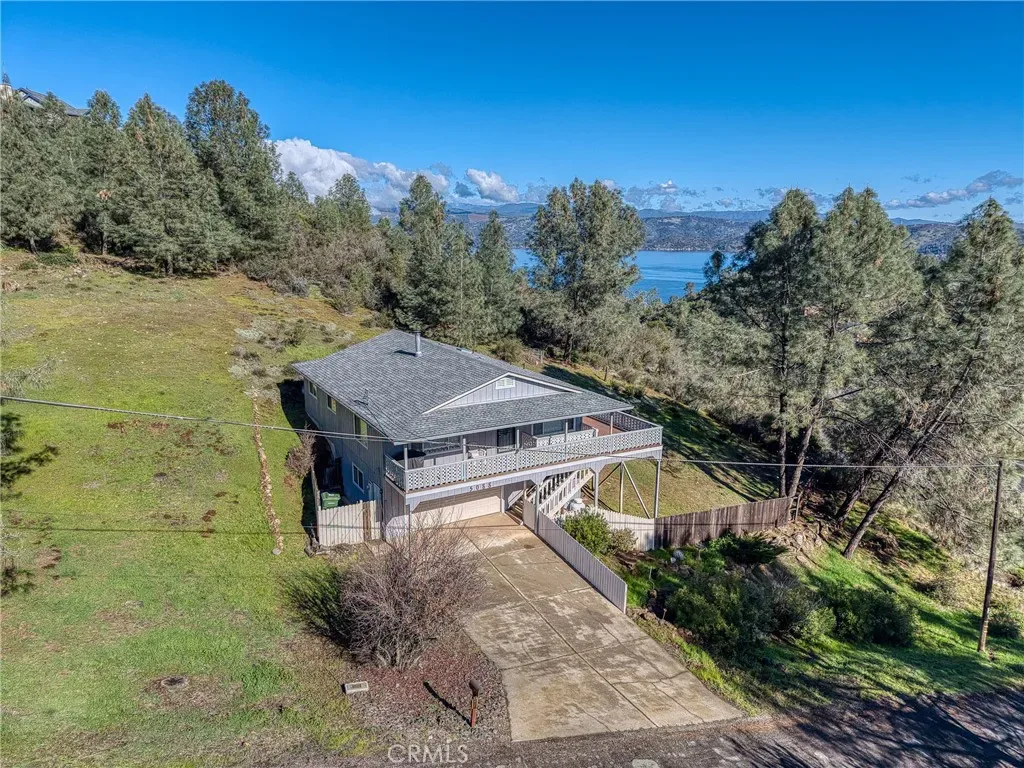 Beautifully updated home with stunning lake and mountain views in desirable Kelseyville Riviera. This 3 bedroom, 2 bathroom home offers 1,496 square feet of living space on a generous 16,988 square foot lot, approximately 0.39 acres. The property features a relatively level driveway leading to a spacious two car garage with an additional bonus room ideal for a workshop, hobby space, or extra storage. Stairs lead to the main living area, where a large half wraparound deck spans the front and side of the home, perfectly positioned to capture sweeping lake views. Enjoy your morning coffee overlooking the water from the deck, the kitchen window, or the primary bedroom, which also features beautiful lake views. All three bedrooms are generously sized and feature mirrored closets. The living room features a cozy wood stove, complemented by central heating and air for year round comfort. The roof and exterior paint were updated approximately four to five years ago, providing added peace of mind. The kitchen has updated appliances and opens to the living room, with lake views visible from the kitchen window. Included in this sale are the dishwasher, washer and dryer, a leather couch, dining set, TV table, draperies, and the carpet, which is approximately five years old. All of these items are lightly used, as the property has been primarily a vacation home. The refrigerator and two new beds could also be included in this purchase. A security system and propane tank are included as well. Located just off Soda Bay Road near Soda Bay and minutes from the Riviera market, gas station, and local restaurants, this home offers convenient access to shopping and dining. Close proximity to the lake, boat launch, and waterfront dining makes this an ideal full time residence, weekend retreat, or vacation property for those who love lake living and boating. Some of the photos have been digitally modified and two of the bedroom photos use virtual staging AI.