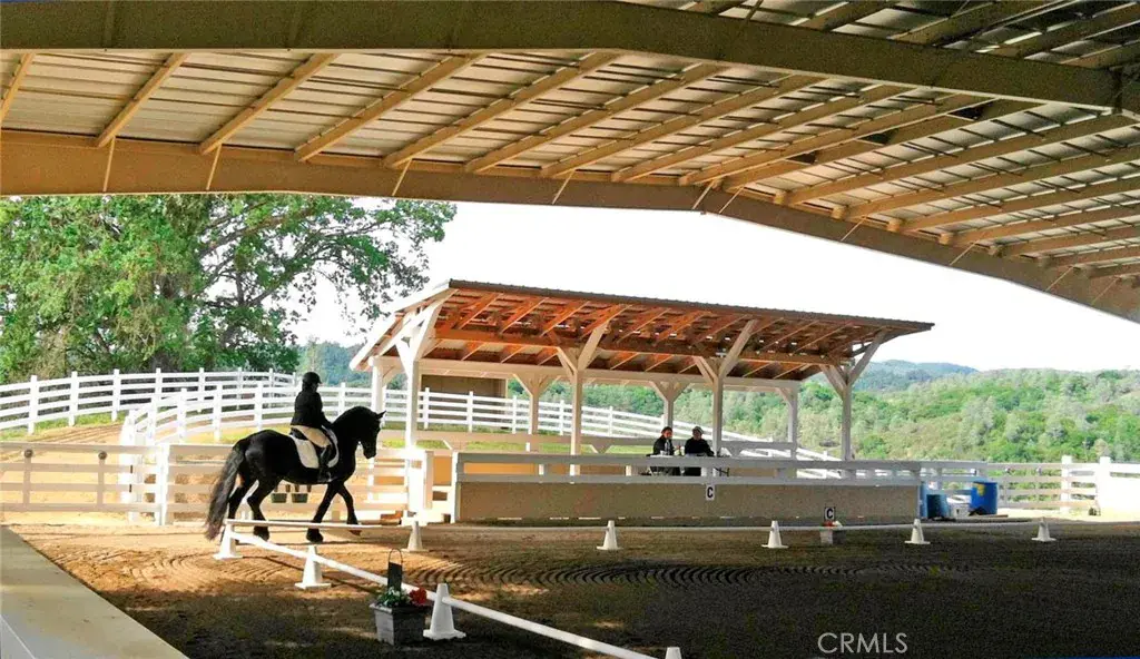 Welcome to 8900 Wight Way, a rare equestrian retreat designed for horse enthusiasts, ranchers, and those seeking versatile country living. Set on expansive acreage with multiple wells, pastures, and arenas, this property combines functional infrastructure with unique amenities for events, training, and comfortable living. The main residence is a charming 3-bedroom, 2-bath home with a large, fenced yard, updated deck with storage, and a huge washer/dryer set-up perfect for horse blankets. Additional features include a heat pump system, mini splits, and a metal roof for lasting durability. Equestrian facilities are extensive and thoughtfully designed: a covered, all-steel, 100×235 Olympic-sized arena with professional-grade footing, LED lighting, full sound and judging system, septic hookup, and booths for spectators, and stunning views. Riders also enjoy a 40×80 meter open arena, gravel pad for 80 ft round pens, and miles of trail systems on and around the property. Multiple paddocks (up to 14), mare and gelding pastures, and double-fenced walkways with water access provide excellent care and separation for horses. A wood barn with stalls, birthing/recovery stalls, hay storage, tack areas, wash rack with hot/cold water, and comfort flooring complete the setup. The ranch is equally well-equipped with a 50×70 shop (built 2023) featuring solar capability, LED lighting, multiple roll-up doors, a chain hoist, and ample 50/30-amp service. Additional highlights include a smokehouse, butcher shop with bathroom, year-round pond, leach fields, and 4-rail fencing without barbed wire. Parking is abundant, with multiple gated entrances, long-term parking near the shop, and an easement for larger vehicles. Whether you’re raising horses, hosting events, or running a ranching operation, 8900 Wight Way is built to handle it all. The property has been home to cattle, equestrian shows, 4-H, and Dressage Society events, and even comes with a 1949 tractor, electrical Solectrac PF4000 tractor with attachments, and Cavaletti equipment for training. With Adobe Creek Reservoir nearby and a strong community presence, this property offers unmatched opportunity and flexibility. Horses thrive here—the pastures, fencing, and layout make for an inviting, calm environment where they’ll come right up to greet you. 8900 Wight Way – a one-of-a-kind equestrian estate blending ranching history, modern upgrades, and event-ready amenities.