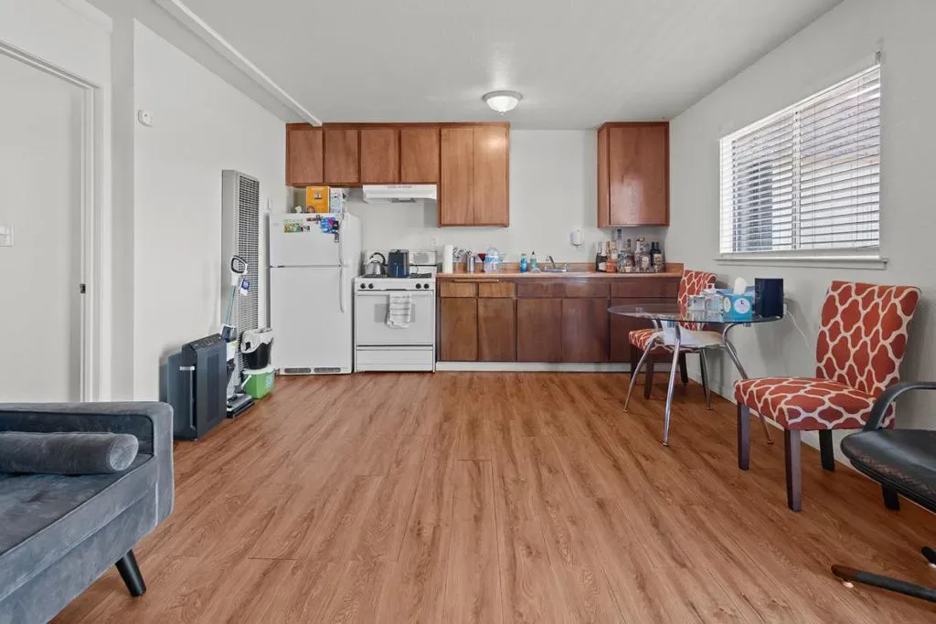 Fantastic investment opportunity! This maintained property features six studio apartment units plus a detached four-bedroom, two-bath home at the front of the lot. Each studio offers comfortable living with great rental potential, and tenants enjoy access to on-site coin-operated laundry and carport parking. The complex sits on a low-maintenance lot with easy-care landscaping, making it ideal for hassle-free ownership. Located near a park, fairgrounds, local shops, and a golf course, this property provides a convenient and desirable setting for tenants.