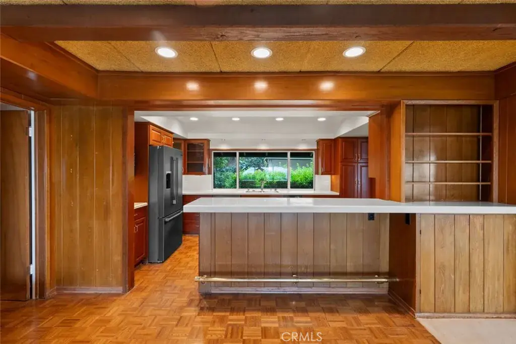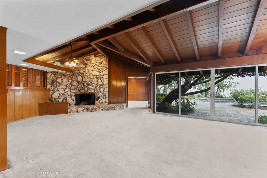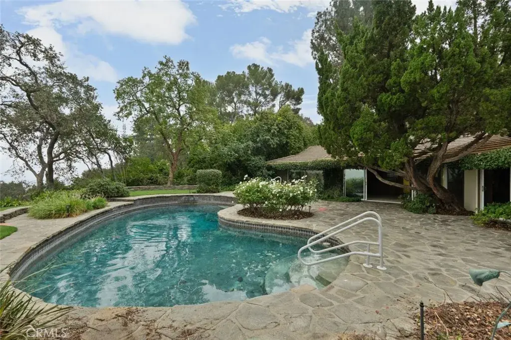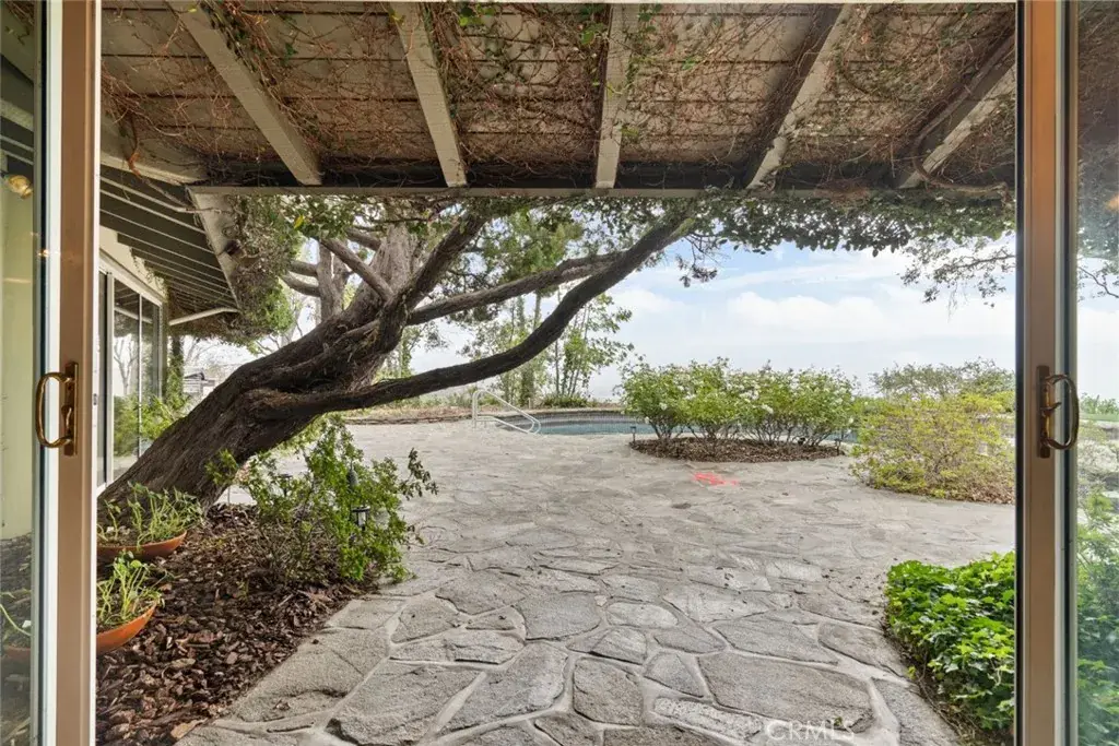 Welcome to 1218 Flintridge Avenue, a breathtaking sanctuary nestled in the picturesque city of La Canada Flintridge! This stunning mid-century modern single-family pool home exudes elegance and comfort, featuring 3 generously sized bedrooms and 3 beautifully designed bathrooms that seamlessly blend contemporary flair with inviting warmth. Set on an expansive 56,866 sq. ft. lot, this property is adorned with lush greenery, creating the perfect retreat for relaxation. A long, private driveway leads to a gated entry, providing ample parking and ensuring ultimate privacy. The meticulously landscaped grounds offer panoramic views of the majestic mountains, enhancing the serene atmosphere. Inside, the residence showcases enchanting beamed coffered ceilings and ambient lighting that create a bright and airy environment, complemented by charming ceiling fans that provide a refreshing breeze. The expansive living room beckons relaxation, complete with a cozy brick-walled fireplace inviting you to unwind. Plush carpeting graces the living room, dining room, and bedrooms, while sturdy hardwood flooring flows throughout the remainder of the home. The kitchen is a true culinary masterpiece, boasting a breakfast counter, built-in electric stovetop, double ovens, stylish range hood, dishwasher, and generous cabinet space—transforming it into an entertainer’s delight. The inviting dining area is perfect for enjoying meals and is conveniently located near a tastefully designed half bathroom. The bright and airy bedrooms offer ample space for personalization, with the primary suite featuring a luxurious en-suite bathroom that includes a chic double sink vanity, spacious walk-in shower, separate bathtub, and bidet. The additional bathrooms showcase relaxing shower-in-tub combinations and another walk-in shower, while a dedicated laundry area with built-in storage enhances functionality throughout the home. Outside, your private backyard oasis awaits, complete with a sparkling pool and spa overlooking the city, providing breathtaking views, along with a private BBQ area and ample greenery, perfect for savoring beautiful weather and unwinding in tranquility. Located in a prime area, this home offers an unparalleled sense of privacy surrounded by lush landscaping while still being a short drive away from an array of restaurants and shopping centers, ensuring both convenience and tranquility.