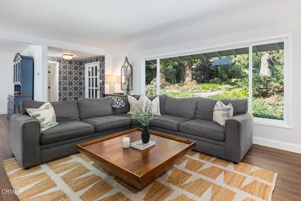 Tucked beneath enchanting deodars in La Canada Flintridge, this newly remodeled ranch-style home embraces nature at every turn. The thoughtfully designed single-level floor plan offers four bedrooms and three bathrooms, creating effortless living with a strong connection to the outdoors. At the heart of the home, the layout provides a central flow among the common gathering spaces. A warm entry opens to an inviting living room with a wood-burning fireplace, seamlessly flowing into the formal dining room. The newly redesigned kitchen features custom cabinetry, a statement range hood, high-end appliances, stone countertops, tile flooring, a farmhouse sink, designer lighting, a reverse-osmosis water filtration system, and a sunny breakfast area. A convenient den with a wood-beamed ceiling, built-in desk, and shelving offers direct access to the entertainer’s backyard. Just beyond, the primary suite is a private retreat with its own fireplace, a custom closet with skylight, and beautifully finished en-suite bathroom. Three additional bedrooms and two full bathrooms flow thoughtfully in sequence, with the newest bedroom addition opening directly to the deck. Lush, intentional landscape architecture frames the property, creating a peaceful backyard anchored by an expansive deck with a custom natural-gas fire pit, saltwater hot tub, large grassy yard, playhouse, garden, and new perimeter wood fencing. A detached two-car garage sits at the front of the property, complemented by a newly pavered driveway and low-voltage landscape lighting. Completing the home is a detached 190-square-foot office–ideal for work-from-home flexibility or a quiet retreat. This nature-forward property pairs top-quality finishes with a relaxed, indoor-outdoor California aesthetic.
