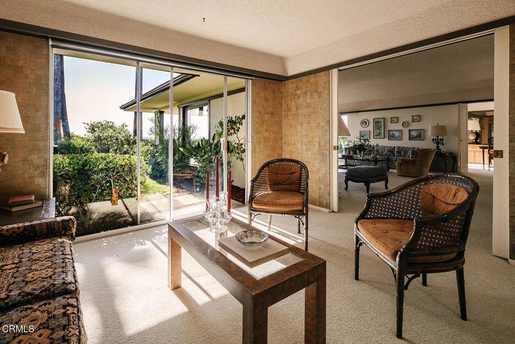 Perched at the end of a quiet cul-de-sac in La Canada Flintridge, 5703 Catherwood is a classic mid-century home defined by privacy, architectural integrity, and extraordinary 180-degree views. The vistas stretch across mountains and open sky, and on clear days extend all the way to the Pacific Ocean–an ever-changing panorama that anchors the home and elevates daily living. Walls of glass and nine sliding doors create exceptional indoor-outdoor ease, opening to dedicated patios, and framing the views from nearly every room. A generous living room takes full advantage of the outlook, offering a dramatic yet serene space for gathering and entertaining, while a separate dining room provides a more formal setting, also oriented toward the scenery. The kitchen flows into a family room, both connecting directly to their own patios–ideal for casual living, morning coffee, and effortless entertaining.The layout includes three bedrooms plus a den that could easily function as a fourth bedroom, office, or studio. Set on an expansive lot with generous flat outdoor space, the property feels secluded and peaceful, with multiple areas to enjoy the landscape and views. Rich with numerous original mid-century details and strong architectural bones, this is a rare opportunity to thoughtfully bring a special home up to date while preserving its timeless design. With unmatched views, privacy, and potential, 5703 Catherwood is truly something special.