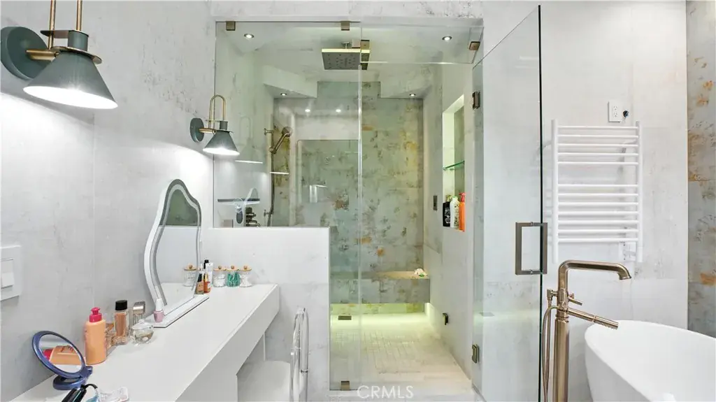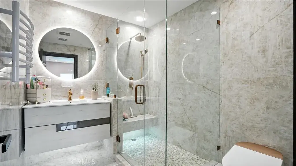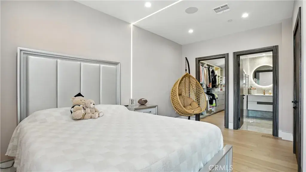 The main level includes 2 bedrooms, 2 bathrooms, and a flexible bonus room—ideal for an office, guest room, or potential sixth bedroom. The master bedroom features abundant natural light, a walk-in closet, and a luxurious en-suite bathroom with a rain shower that doubles as a steam room. Upstairs, three spacious bedrooms include a Jack-and-Jill bath, private balconies, and one with its own bath and walk-in closet.