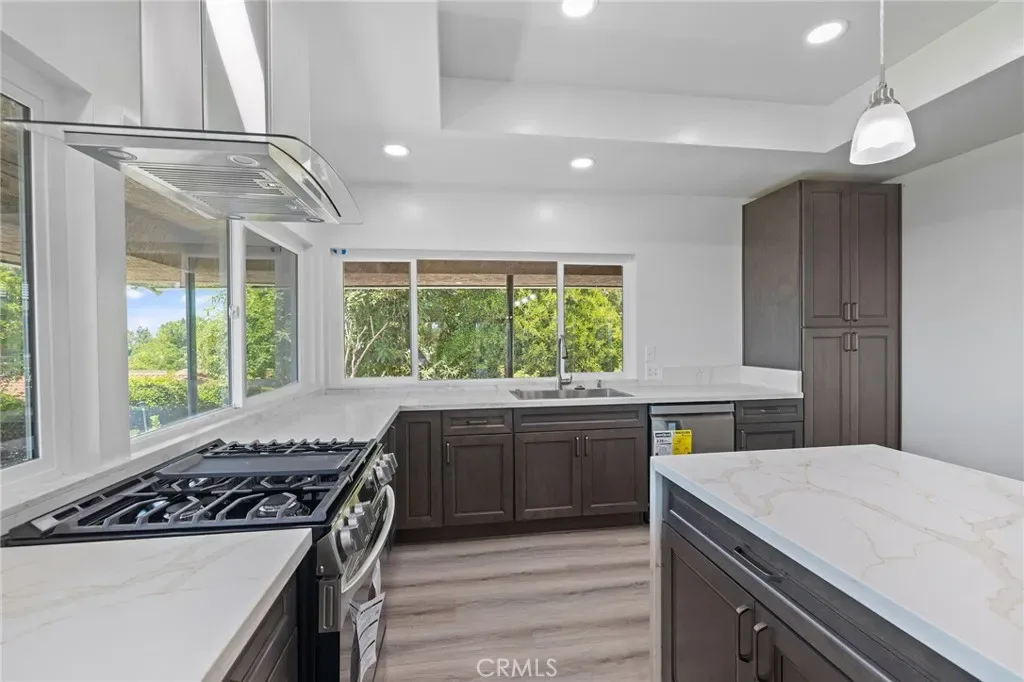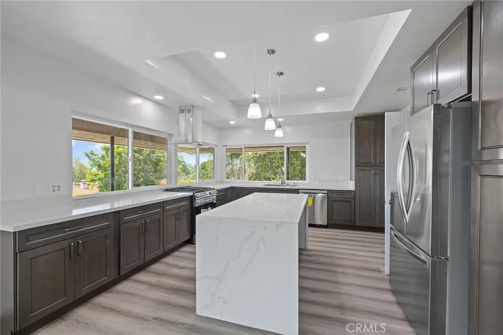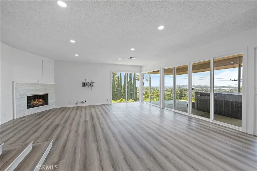 Perched in the hills of La Habra Heights, this completely renovated single-level home combines modern design with timeless elegance, offering panoramic views of Catalina Island, city lights, and rolling hills. Walls of glass fill the open-concept living space with natural light, while the updated modern tile fireplace creates a striking focal point. The home features three private bedroom suites, each with its own beautifully appointed bathroom and dedicated closet, plus a guest half bath. The primary suite boasts a walk-in closet and secondary closet along with a spa-inspired bath. The chef’s kitchen offers premium appliances, abundant counter space, and a convenient pass-through to the dining area. Set on over a half-acre lot with a wraparound patio, 2-car garage, inside laundry, and central HVAC, this turnkey property is perfect for relaxing, entertaining, and enjoying the serene hillside setting—all just minutes from shopping, dining, and freeway access.