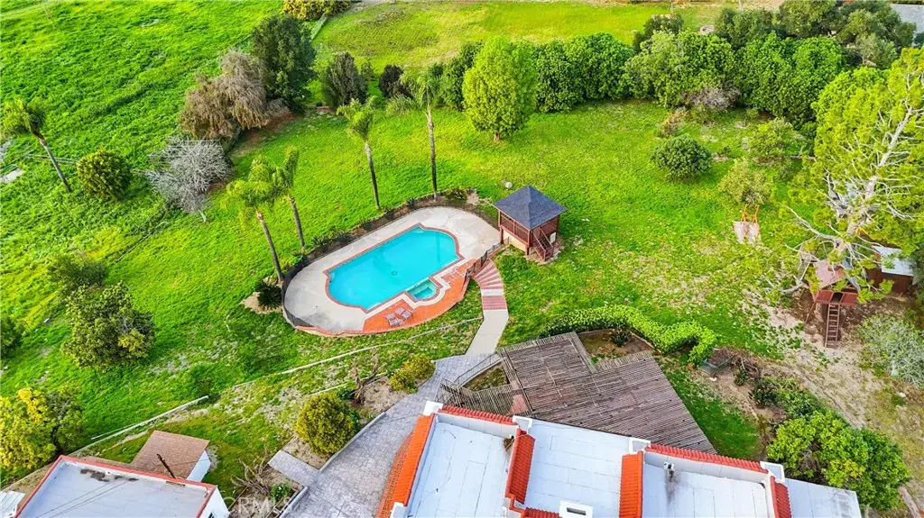 Welcome to 1847 Descanso Dr. in La Habra Heights. This classic 1920’s Spanish home is situated on a flat 1.8-acre lot. This charming single-level residence features exceptional workmanship throughout, including hardwood floors and an updated family kitchen with an eating nook and plenty of windows that offer natural light. The home offers three bedrooms, two bathrooms, and a separate sunroom. The exterior features a pool, spa, gazebo, tennis court, and a separate sports court. The gated entrance leads to an abundance of parking finished with pavers. The remarkable grounds include almost 2 acres of useable land and a variety of fruit trees, including kumquat, orange, lemon, grapefruit, pomegranate, and figs. The home is impeccably maintained inside and out. You will find newer windows throughout and an upgraded modern kitchen with stainless steel appliances and granite countertops. The bathrooms have been updated with modern finishes, including a soaking tub, custom tile, and quartz countertops. All upgrades are carefully integrated with the Spanish style, starting with the iron doors and arched porch that greet you upon arrival. Located in a private setting with convenient access to Fullerton Rd, the property also includes a separate room off the garage that can be used as a workshop, gym, or office.