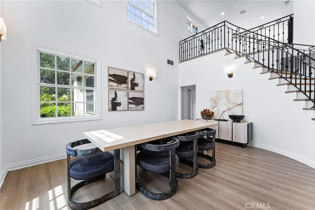 The outdoor amenities include a pool, spa, waterfall, BBQ/bar, and a spacious grassy area with tropical foliage and a variety of fruit trees. Smart home system is wired for high-speed internet to ensure optimal Wi-Fi performance in every room, and centralized control from your smartphone over the air conditioning, pool, automatic gate, security system, and built-in sound system. The direct access garage consists of two 2-car garages, and additional parking providing enough room to park an RV or around 20 cars. Whether you’re entertaining guests or enjoying a quiet night in, this home delivers convenience, comfort, and control with cutting-edge ease.