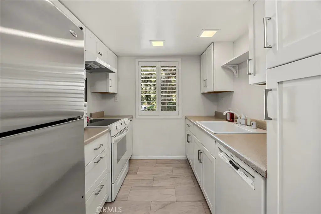 Welcome to this tastefully updated 2 bedroom, 2 bathroom ground floor condo offering 886 square feet of comfortable living space. Perfectly tucked away in a well-maintained community, this home combines convenience, style and functionality. Step inside to find tasteful upgraded tile flooring flowing seamlessly through the main living area. The cozy gas fireplace anchors the spacious living room, creating a warm and inviting atmosphere. Each bedroom offers ample size and generous closet space, with the master bedroom featuring an en suite bathroom. The guest bathroom has also been recently remodeled. The HOA covers gas, water and trash as well as a community pool and jacuzzi. Enjoy the benefits of ground-floor living, including easy access—no stairs!—and a private feel, perfect for those seeking comfort and convenience. To top it off, this unit comes with a detached 2-car garage, providing abundant storage and parking space. Enjoy the beautiful Southern California weather while relaxing on your private front patio. This is the only ground unit available in this complex, make it your own!