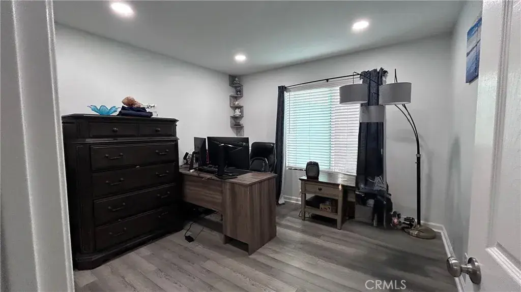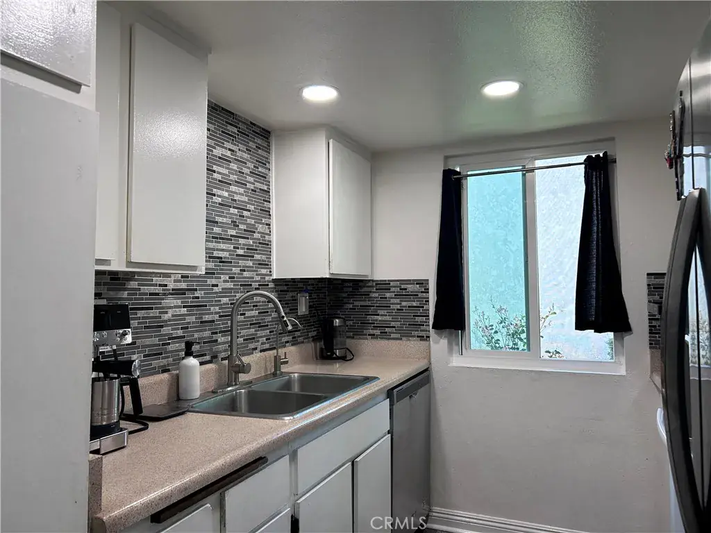 This rare ground-level end-unit condo at the quiet back of the secure, gated Fashion Heights community in La Habra offers privacy, convenience, and modern updates. The 2-bedroom, 2-bath home (approx. 886 sq ft) features fresh new vinyl plank flooring in main areas, newer carpet in bedrooms, brand new recessed lighting throughout for a bright, contemporary vibe, dual-pane windows, and an updated kitchen with tile floors and stainless-steel appliances.