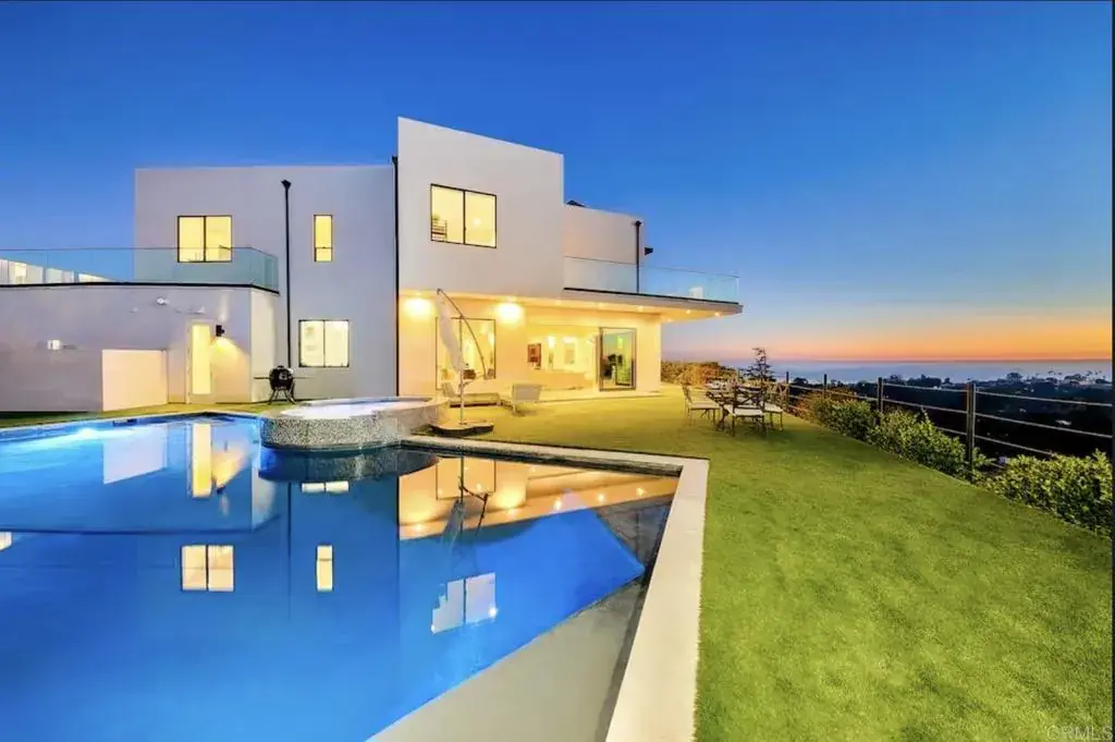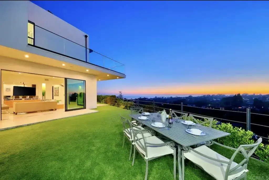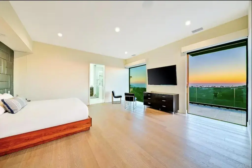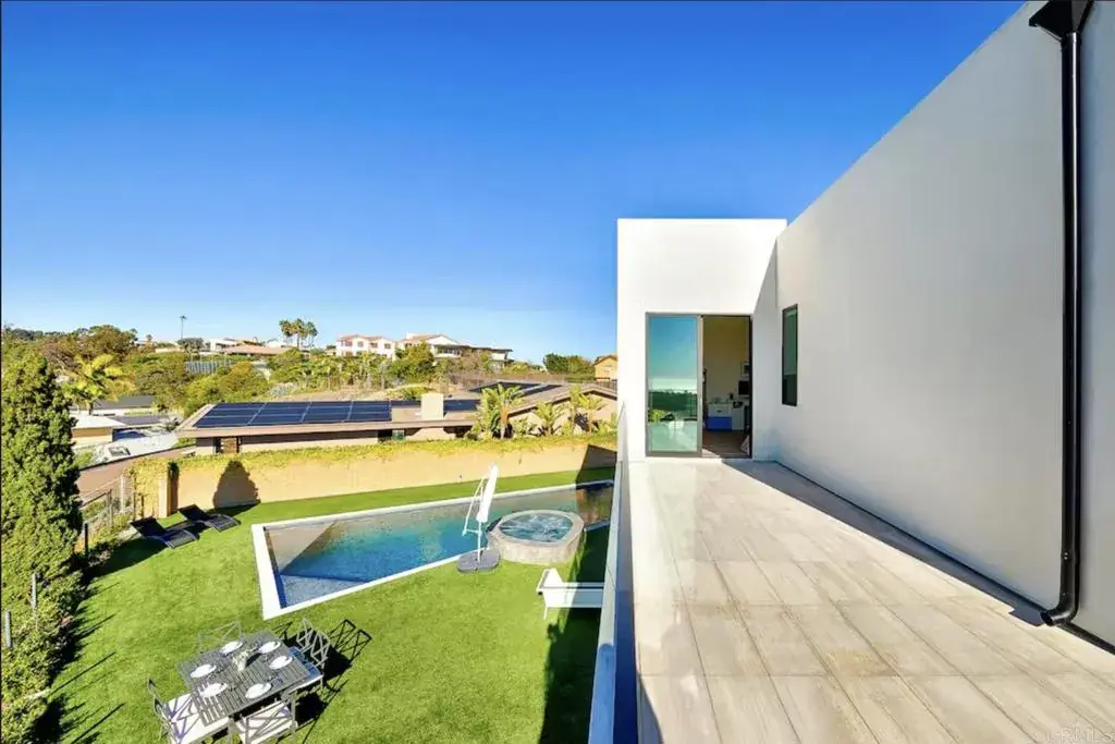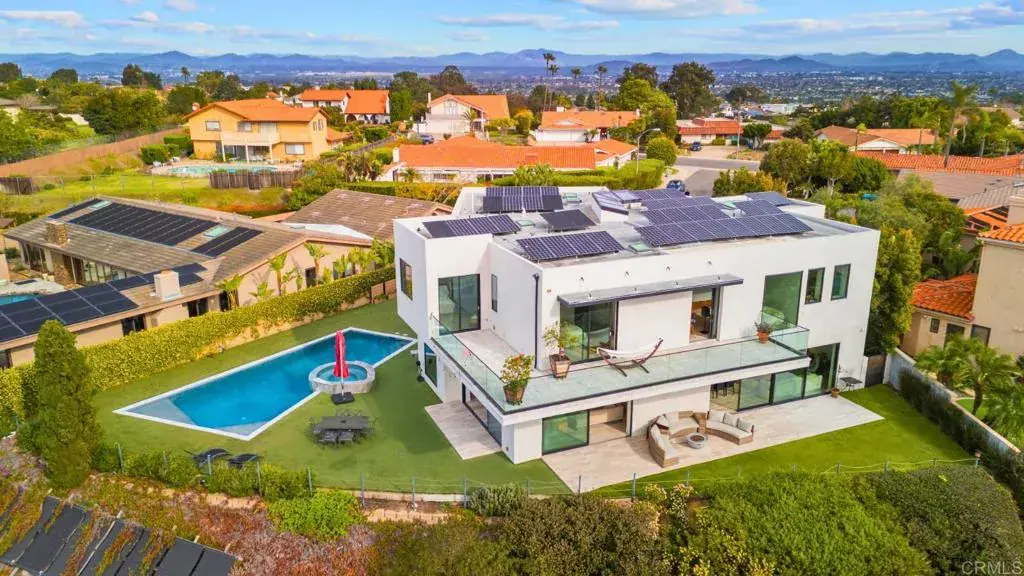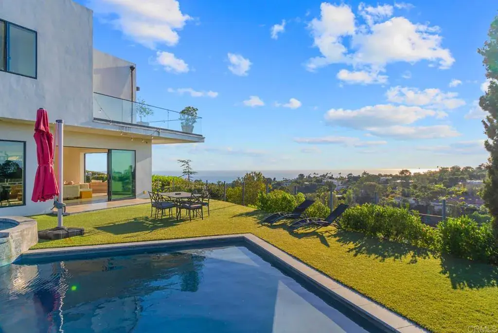 Perched at the top of the iconic Mount Soledad in the heart of La Jolla Alta, this custom contemporary residence offers a rare combination of panoramic ocean and canyon views, privacy, and modern luxury. Enjoy breathtaking vistas stretching from Pacific Beach to Sunset Cliffs, complemented by lush green hills and serene canyon scenery, an exceptional setting that captures the very best of coastal Southern California. Built in 2016 and thoughtfully designed with a contemporary, minimalist aesthetic, the home features an open floor plan with high ceilings and abundant natural light, creating a seamless connection between indoor living spaces and the surrounding landscape. The residence offers 5 spacious bedrooms, each with its own en-suite bathroom and walk-in closet. 4 upstairs bedrooms enjoy direct access to a wraparound scenic balcony, perfect for taking in sunrise and sunset views. Downstairs bedroom is set up as a service-maid’s quarters. Situated on a just-under-half-acre lot at the end of a quiet cul-de-sac in one of La Jolla’s most family-friendly neighborhoods, the property provides both privacy and convenience. Outdoor living is enhanced by a saltwater pool and jacuzzi with solar heating, along with a detached cabana-style bathroom ideal for poolside use and rinsing off after the beach. The home is fully energy efficient, featuring 36 owned LG solar panels installed free and clear. A large driveway offers ample parking for multiple vehicles or recreational vehicles. This exceptional property combines location, views, modern design, and sustainability, an outstanding opportunity to own a true La Jolla retreat.
