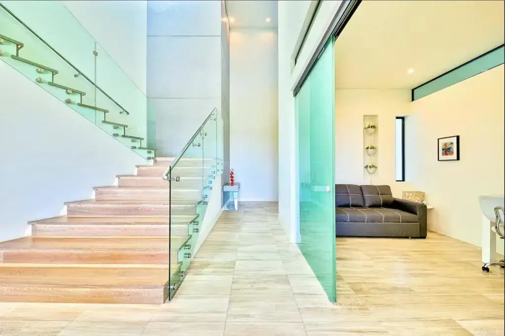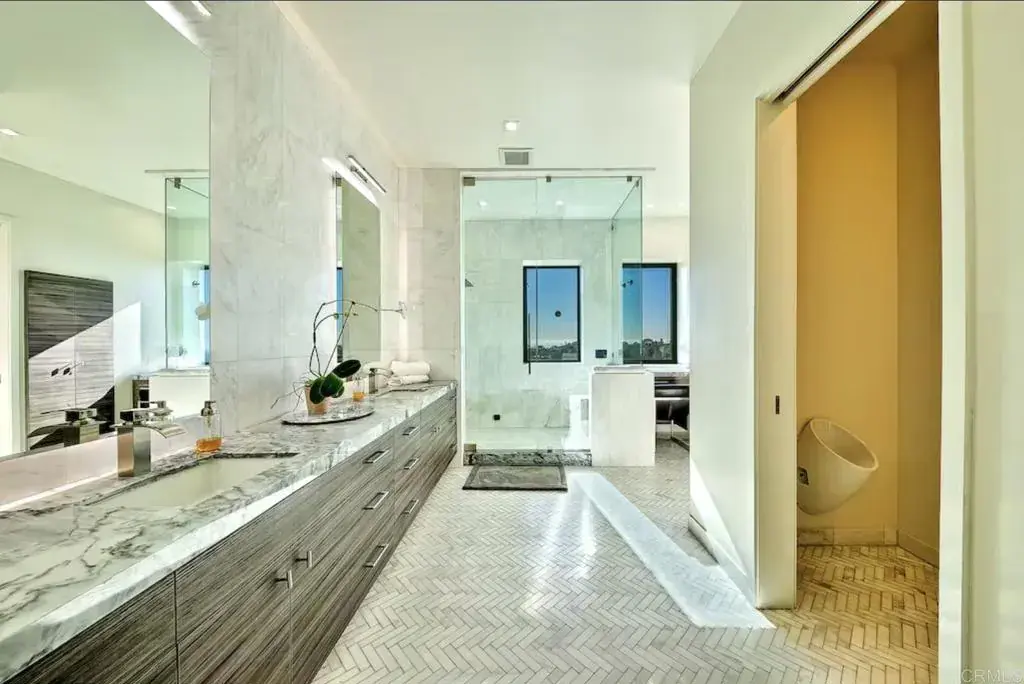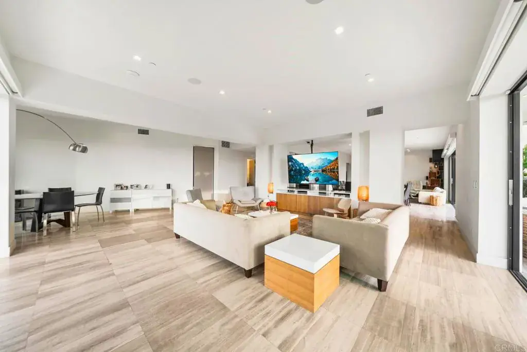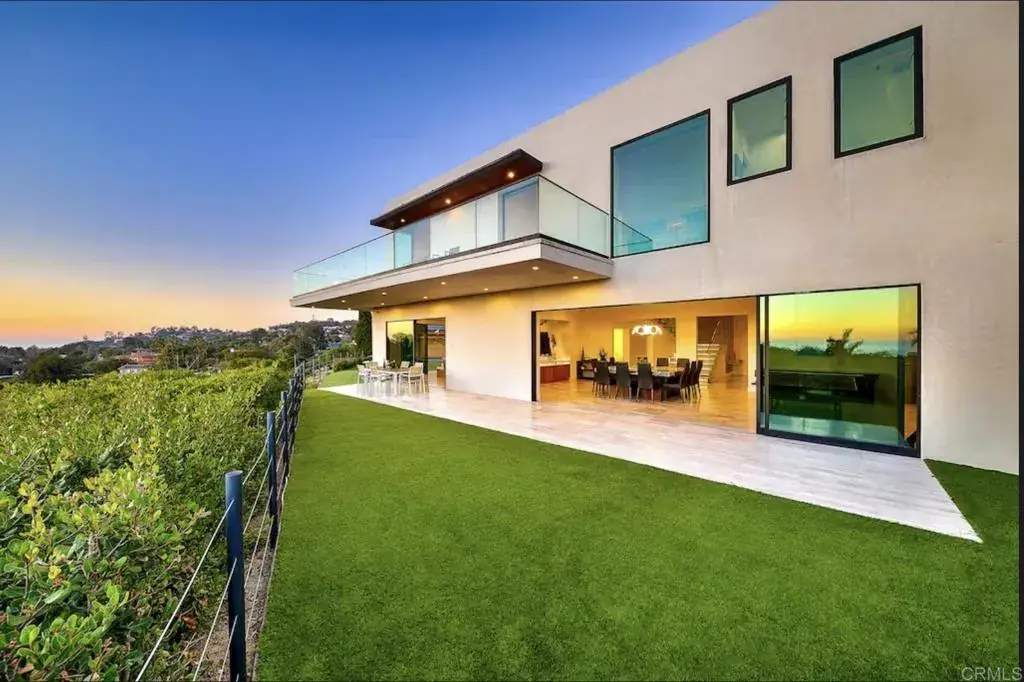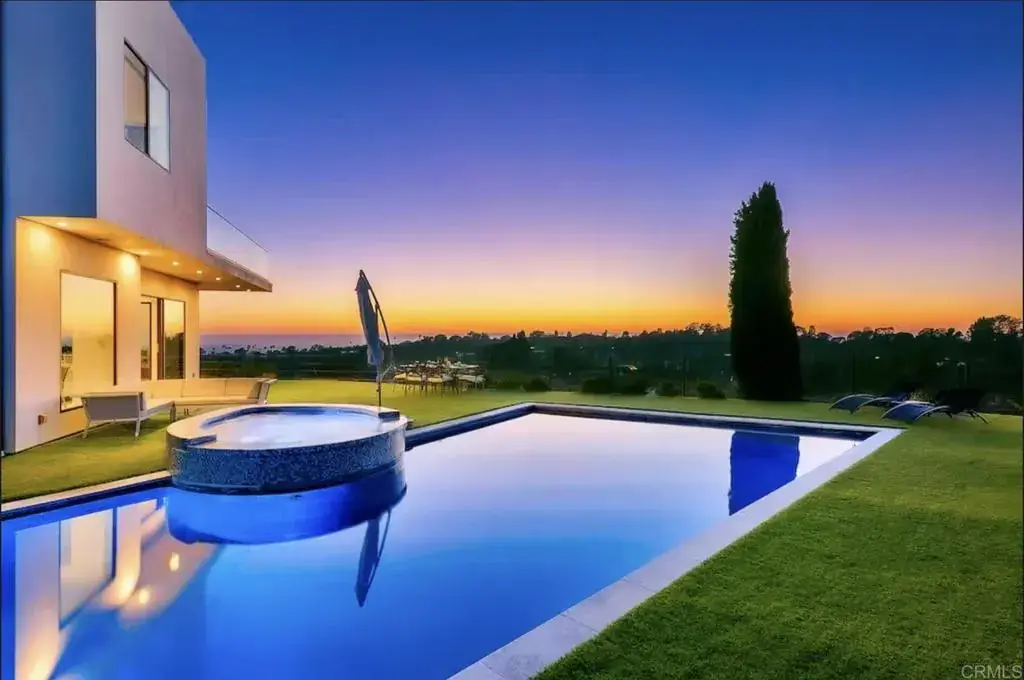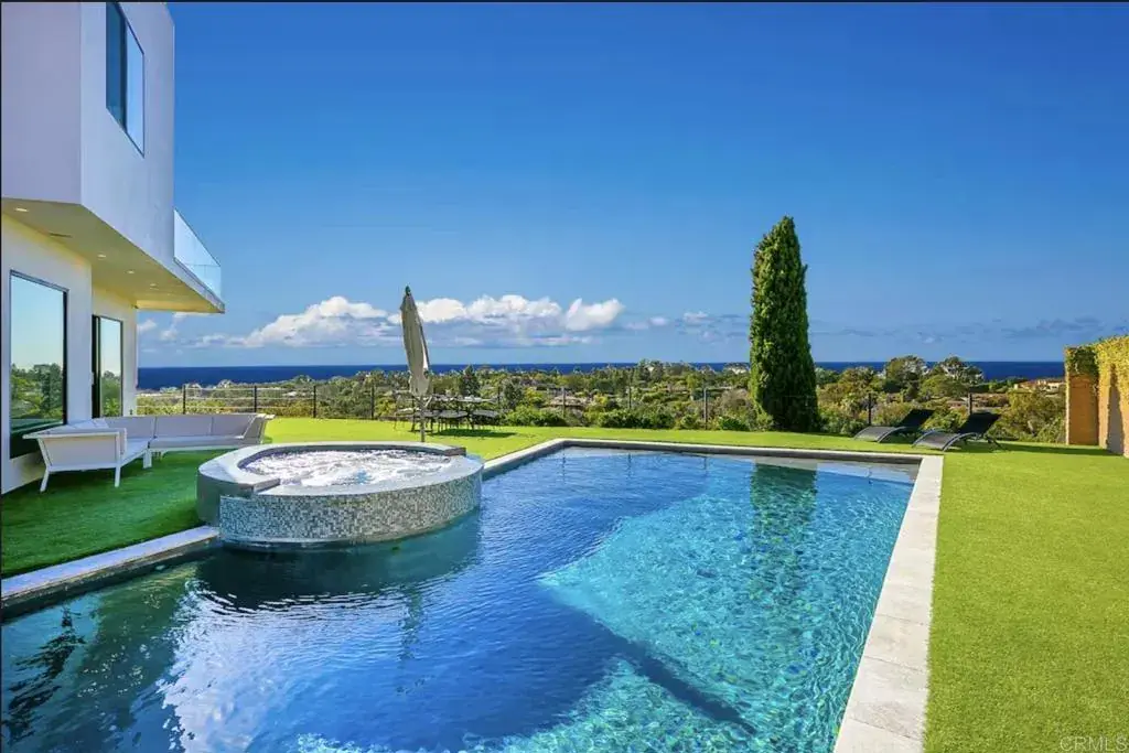 Perched at the top of the iconic Mount Soledad in the heart of La Jolla Alta, this custom contemporary residence offers a rare combination of panoramic ocean and canyon views, privacy, and modern luxury. Enjoy breathtaking vistas stretching from Pacific Beach to Sunset Cliffs, complemented by lush green hills and serene canyon scenery, an exceptional setting that captures the very best of coastal Southern California. Built in 2016 and thoughtfully designed with a contemporary, minimalist aesthetic, the home features an open floor plan with high ceilings and abundant natural light, creating a seamless connection between indoor living spaces and the surrounding landscape. The residence offers 5 spacious bedrooms, each with its own en-suite bathroom and walk-in closet. 4 upstairs bedrooms enjoy direct access to a wraparound scenic balcony, perfect for taking in sunrise and sunset views. Downstairs bedroom is set up as a service-maid’s quarters. Situated on a just-under-half-acre lot at the end of a quiet cul-de-sac in one of La Jolla’s most family-friendly neighborhoods, the property provides both privacy and convenience. Outdoor living is enhanced by a saltwater pool and jacuzzi with solar heating, along with a detached cabana-style bathroom ideal for poolside use and rinsing off after the beach. The home is fully energy efficient, featuring 36 owned LG solar panels installed free and clear. A large driveway offers ample parking for multiple vehicles or recreational vehicles. This exceptional property combines location, views, modern design, and sustainability, an outstanding opportunity to own a true La Jolla retreat.