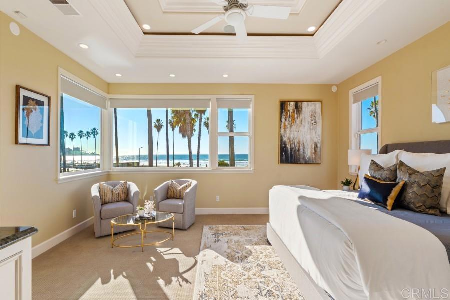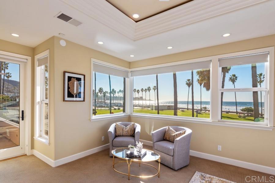 Prime, Stunning, La Jolla Shores Oceanfront Location!! Panoramic Ocean views from the Roof Top Deck and almost every room! Completely Remodeled. Fully Furnished 5 bedroom(3 masters) and Five Full Baths, 2 Half Baths. Fully equipped kitchen w/top of the line appliances. 2 Roof top ocean view decks feature a full kitchen, BBQ, and Spa. Fully equipped gym located on second floor. Property has an elevator. All Bedrooms and Bathrooms contain High End Finishes and Furnishings. Beautiful Courtyard at the center of the living space. Entertainers Delight. Just steps to some of San Diego’s best surfing and one of the most prestigious beaches in the World. Walking distance to world famous beach, downtown shopping, and restaurants. Pictures say it all. This Luxury Furnished House is truly Ocean Living at its Finest!!