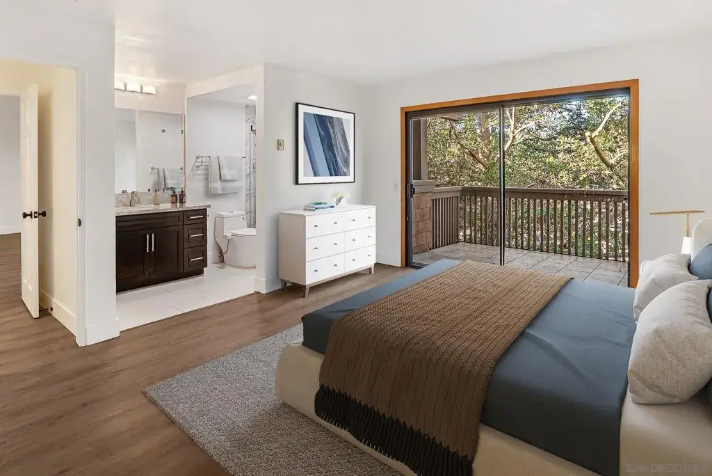 Welcome to this single-level, two bedroom, two bath corner unit with two private balconies, located in one of San Diego’s most desirable neighborhoods! Freshly painted and fully remodeled, stainless-steel appliances & kitchen sink, vinyl plank flooring throughout. The living space includes a cozy gas fireplace and two covered, tiled balconies accessible from both the living room and the primary bedroom. Resort-style amenities including a pool, spa, tennis courts, and clubhouse, minutes from UCSD, major tech hubs, top hospitals, beaches, restaurants, grocery stores, movie theaters, and with easy freeway access.