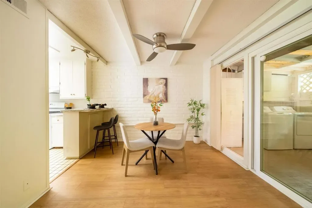 Welcome to this nicely refreshed 1-bedroom, 1-bath condo in the highly sought-after Grossmont Village community of La Mesa. Offering 740 square feet of comfortable living space, this home is ideally positioned within a serene, park-like setting featuring expansive greenbelts, mature trees, walking paths, a sparkling pool, and clubhouse. Recently updated and move-in ready, the interior has been freshly painted throughout and showcases newer light wood-tone LVP flooring that enhances the home’s bright and airy feel. The spacious living area opens seamlessly to a large enclosed patio through a dual-pane 6-panel slider, creating flexible indoor-outdoor living space—perfect for relaxing, entertaining, or a home office setup. The patio also includes a convenient in-unit washer and dryer. The bedroom is generously sized and filled with natural light from large windows overlooking the lush greenbelt, offering peaceful views and a tranquil atmosphere. Dual-pane windows throughout provide added comfort and energy efficiency. Additional highlights include a roof replaced by the HOA last year, an assigned covered carport space with storage, and a permit for a second vehicle in the open parking area. Enjoy resort-style living in a beautifully maintained community, all conveniently located near shopping, dining, and public transportation. An excellent opportunity for first-time buyers, downsizers, or investors seeking value in a quiet, well-kept community.