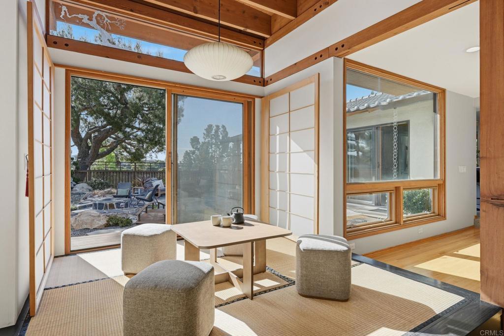 A rare Mt. Helix architectural treasure designed by renowned architect Kotaro Nakamura, this award-winning residence is a masterful blend of Japanese design principles and Southern California living. Honored with an Award of Excellence by San Diego Home & Garden Magazine, the home is centered around a tranquil Zen garden—visible from nearly every room—creating a seamless connection between indoors and out. The dramatic “genkan” entry sets the tone upon arrival, grounded by two monumental natural logs harvested from fallen trees on Mt. Palomar, offering a striking sense of place, intention, and reverence for natural materials. The U-shaped floor plan embraces the formal garden and water features, filling the home with light, calm, and balance. This stunning 3-bedroom, 2.5-bath residence offers approximately 2,471 sq ft of thoughtfully curated living space, showcasing raised hardwood floors, etched glass accents, and serene garden and ocean views on clear days of the Coronado Islands. The upgrades blend modern comfort with timeless design, while the meticulously designed landscaping is reminiscent of the Japanese Friendship Garden in Balboa Park. Every corner of reminiscent of this half acre is curated for beauty, tranquility and a peaceful living experience. Additional features include Japanese ceramic tile roofing with rolled stainless steel, dual HVAC systems, water filtration, granite countertops, indirect lighting, integrated security, ethanol fireplace and more—each detail selected with intention and craftsmanship. A truly special offering—peaceful, refined, and architecturally significant—this is Mt. Helix living at its finest. People are drawn to Mt. Helix for its rare blend of elevated views, privacy, and community charm. Perched above La Mesa, the area offers sweeping panoramas, a peaceful residential feel, and distinctive homes on larger lots—many custom-designed to embrace the hillside setting. Residents enjoy a quiet, nature-forward lifestyle with easy access to parks, neighborhood gatherings, and nearby shopping and freeways, making Mt. Helix feel like a serene retreat that’s still conveniently connected to the rest of San Diego.