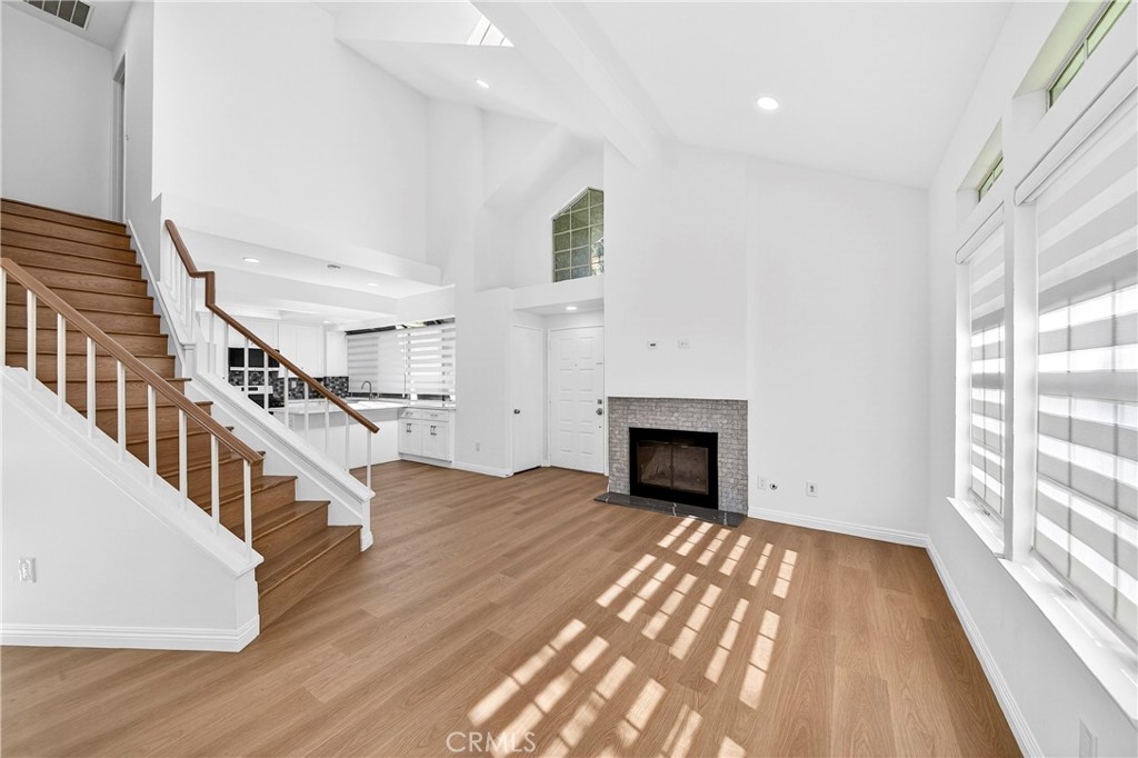 This highly desirable three-bedroom, two-bathroom condo is move-in ready and offers all the updates you are seeking, including a one-bedroom downstairs. Upstairs, you will find two spacious bedrooms with a brand-new Jack and Jill bathroom. Upon entering, you will be greeted by the spacious living room, featuring vaulted ceilings and an inviting fireplace. The living room and dining room are open to the kitchen, creating an open floor plan. Numerous windows make this property exceptionally light, bright, and airy. The completely remodeled vinyl plank flooring runs throughout the interior. The brand-new kitchen boasts white shaker-style cabinets, quartz countertops, a stylish backsplash, a large pantry, a deep stainless-steel sink, and stainless-steel appliances. The first-level bedroom is a good size with private entry to the first-level full bathroom and overlooks a private patio area. Upstairs, the two additional bedrooms both feature vaulted ceilings, ample closets, and share the second full bathroom with a dual sink vanity. Both bathrooms have been updated with white shaker cabinets, brushed stainless fixtures, and quartz countertops. The laundry is conveniently located in the hallway adjacent to the garage entry. The paved brick patio offers a great place to barbecue separately from guests or use as a small garden area. This property is located in a very nice development surrounded by lush mature trees and numerous greenbelts. The quiet, relaxing community ambiance and surroundings are well-maintained by the Association. Direct access to the two-car garage is available, and there is ample guest parking nearby. Enjoy the Association pool and spa. The property is conveniently located close to shopping, restaurants, banks, grocery markets, transportation, and golf courses.