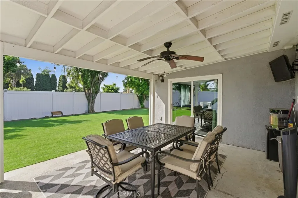 Recent improvements include ceiling fans and updated lighting throughout, new vinyl fencing surrounding the property, and low maintenance turf in both the front and backyard.